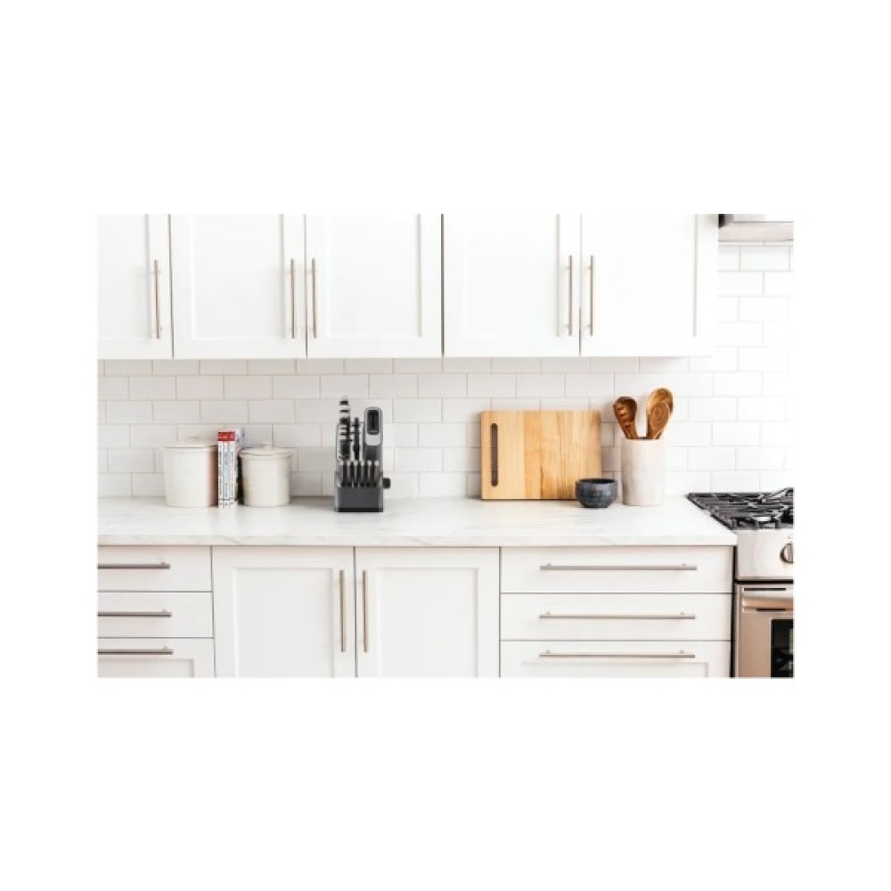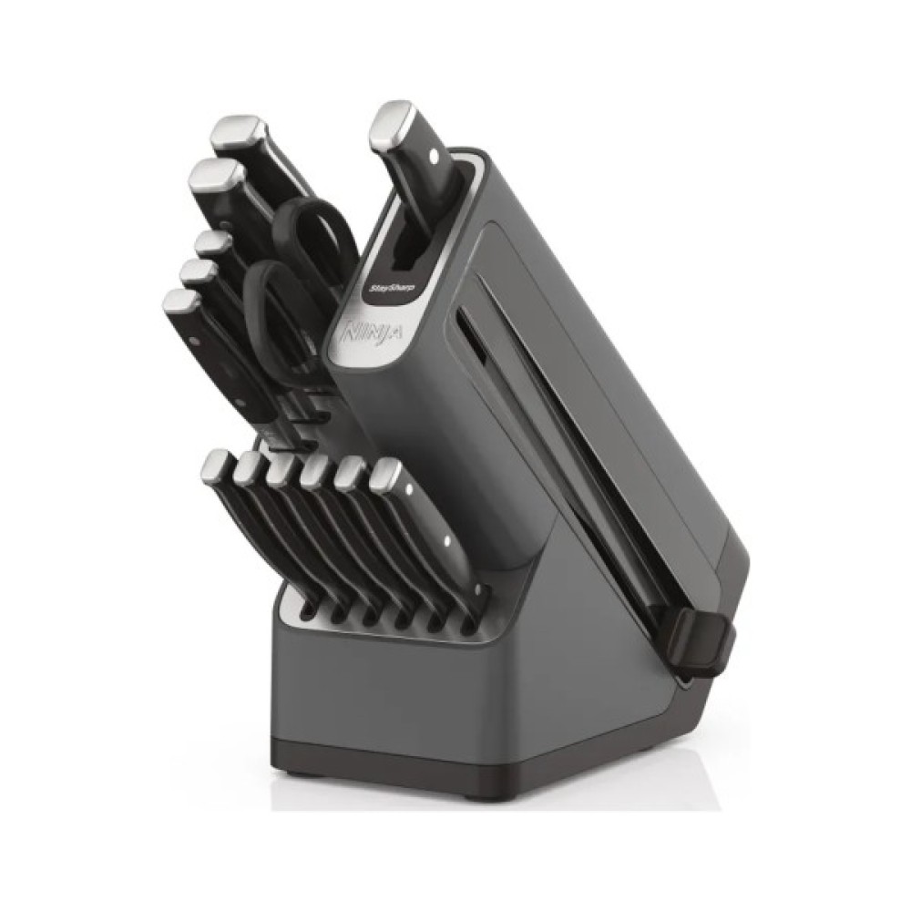 Набір Ninja StaySharp Deluxe K32014EUUK пропонує повний арсенал для різних кулінарних завдань. У комплекті ви знайдете 12 високоякісних ножів, які задовольнять усі потреби: від нарізання хліба до подрібнення готових стейків під час сімейної вечері. Найбільші за розміром ножі 8 дюймів — основний шеф-ніж, для хліба з зубчастим лезом та для нарізання. Наступний базовий розмір це 5 дюймів використовується у двох ножах, для відділення та філеювання м’яса та універсальний для більшості завдань на кухні. Ножі для стейків у кількості 6 штук довжиною 4,5 дюйми та для чищення овочів і фруктів 3,5 дюйми. До набору також входять також багатофункціональні кухонні ножиці та елегантна підставка, яка не тільки зручно організує ножі, але й підкреслить сучасний інтер'єр кухні. Працюйте з будь-якими інгредієнтами: овочами, м’ясом, хлібом, стейками, делікатними чи твердими продуктами.