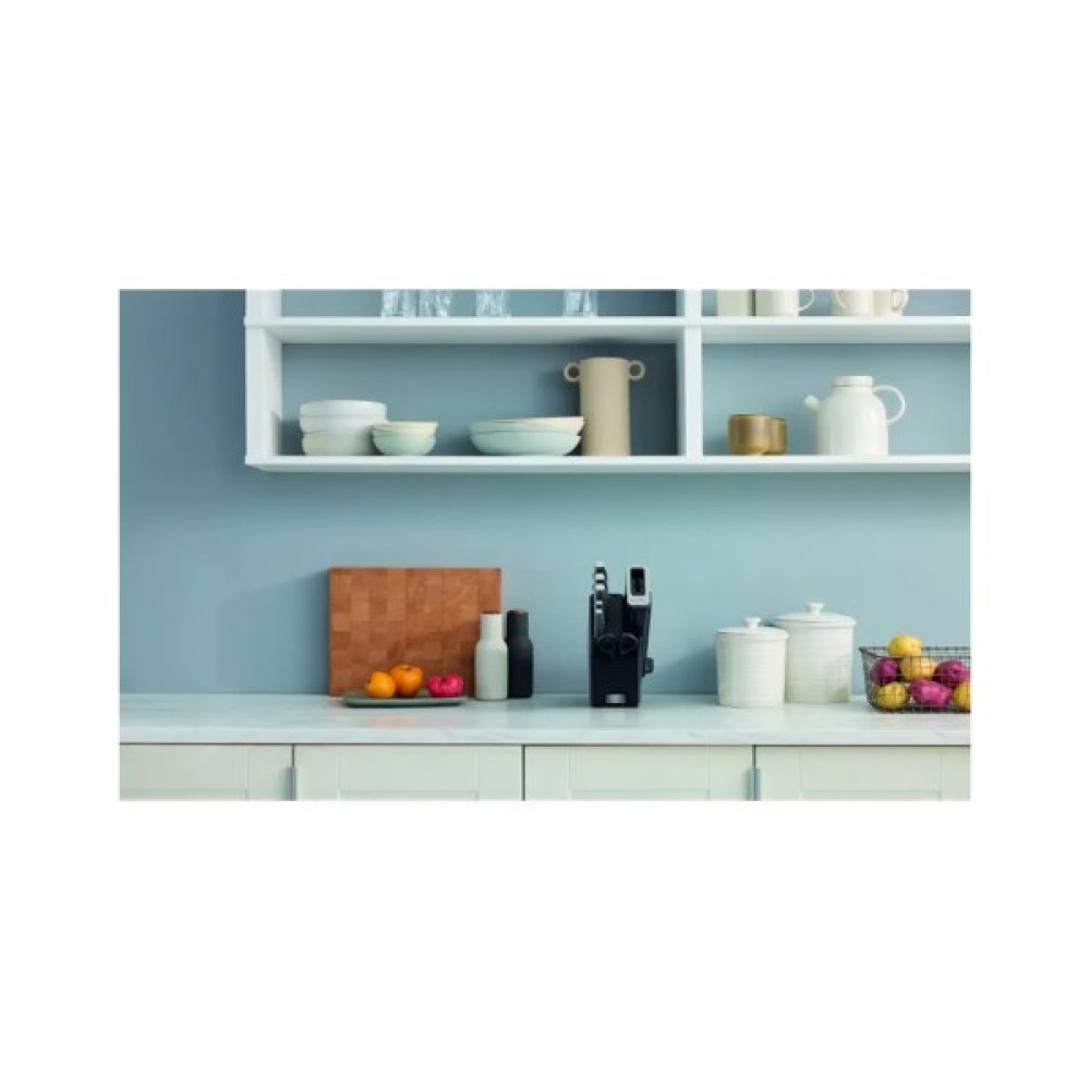 Унікальний бонус набору Ninja StaySharp — вбудована точилка в підставці для ножів. Забудьте про складнощі з підтримкою гостроти лез! Тепер достатньо кілька разів провести ножем через спеціальний отвір у підставці, і ваш інструмент знову гострий, як у перший день використання. Це не лише зручно, але й безпечно: ви завжди працюєте з оптимально заточеними лезами для уникнення випадкового травмування. А стильна біла підставка не лише зберігає ваші ножі в порядку, але й стане яскравим акцентом на будь-якій кухні.