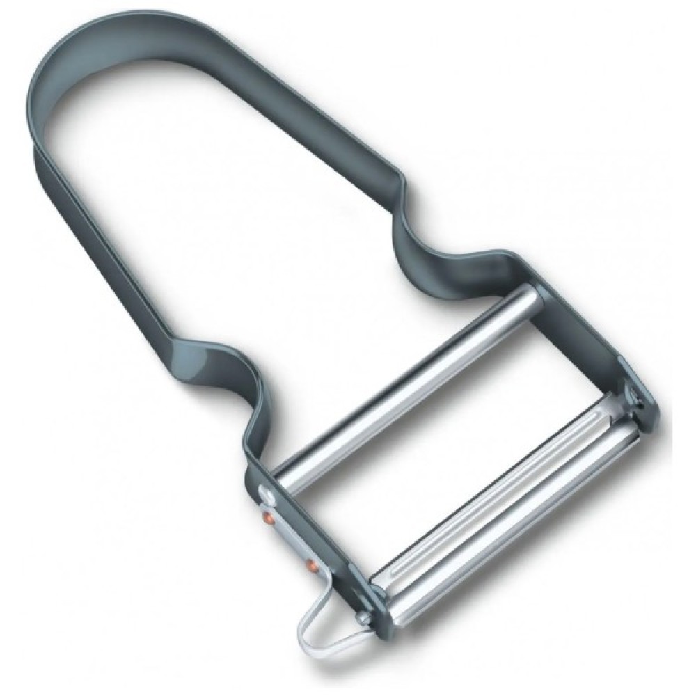 Ручка виготовлена з алюмінію, а гостре гладке лезо з високоякісної неіржавної сталі. Це незамінна річ як професійних кухарів, так любителів. Оскільки конструкція овочечистки дозволяє різати близько до шкірки фрукта чи овочів, ви збережете властиві продукту вітаміни.