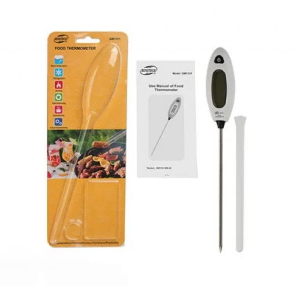 Термометр для м'яса GM1311 виробництва фірми Benetech — це зручний, високоточний вимірювальний прилад. Термометр GM1311 завдяки великому діапазону вимірюваних температур підходить ідеально для вимірювання температури під час приготування м'яса, піци, контролюючи температуру охолоджених і заморожених продуктів. Останнє дуже актуально, оскільки постійний контроль температури замороженого м'яса сприяє тривалішому зберіганню. А міцний металевий зонд легко проткне навіть промерзле м'ясо. Але сфера застосування цих термометрів набагато ширша за харчові продукти. Їх можна використовувати для вимірювання температури рідини, ґрунту тощо.