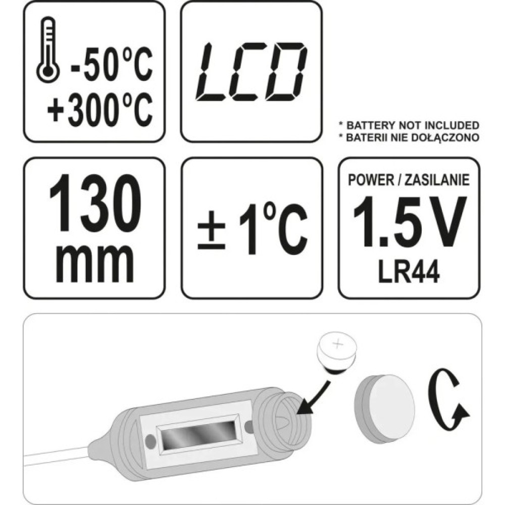 • Електроживлення: 1,5 В постійного струму (1 х LR44).