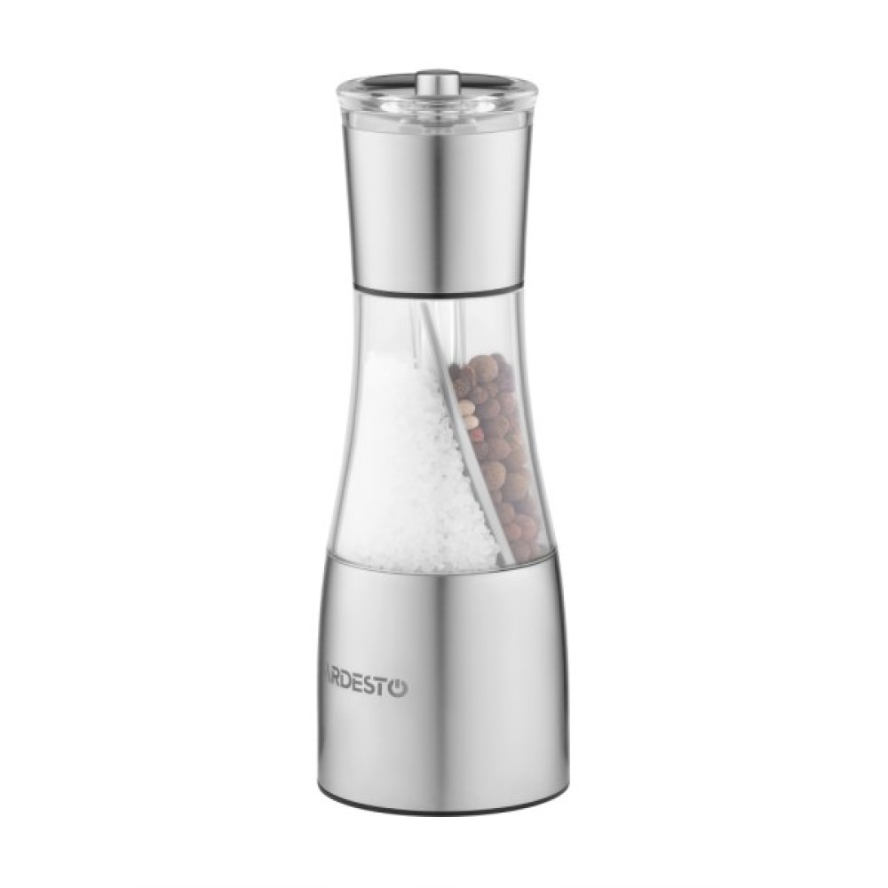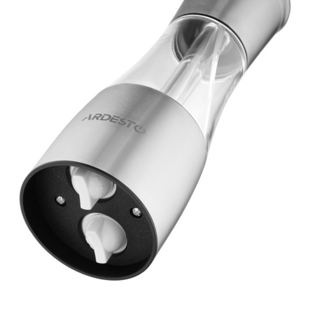 Млин для солі та перцю 2в1 від Ardesto виготовлений з нержавіючої сталі та акрилу. Робота млина здійснюється шляхом обертання однієї з рухомих частин, під час якої керамічне лезо перемелює вміст. Оснащена функцією регулювання ступеня помелу. Не можна мити в посудомийній машині.