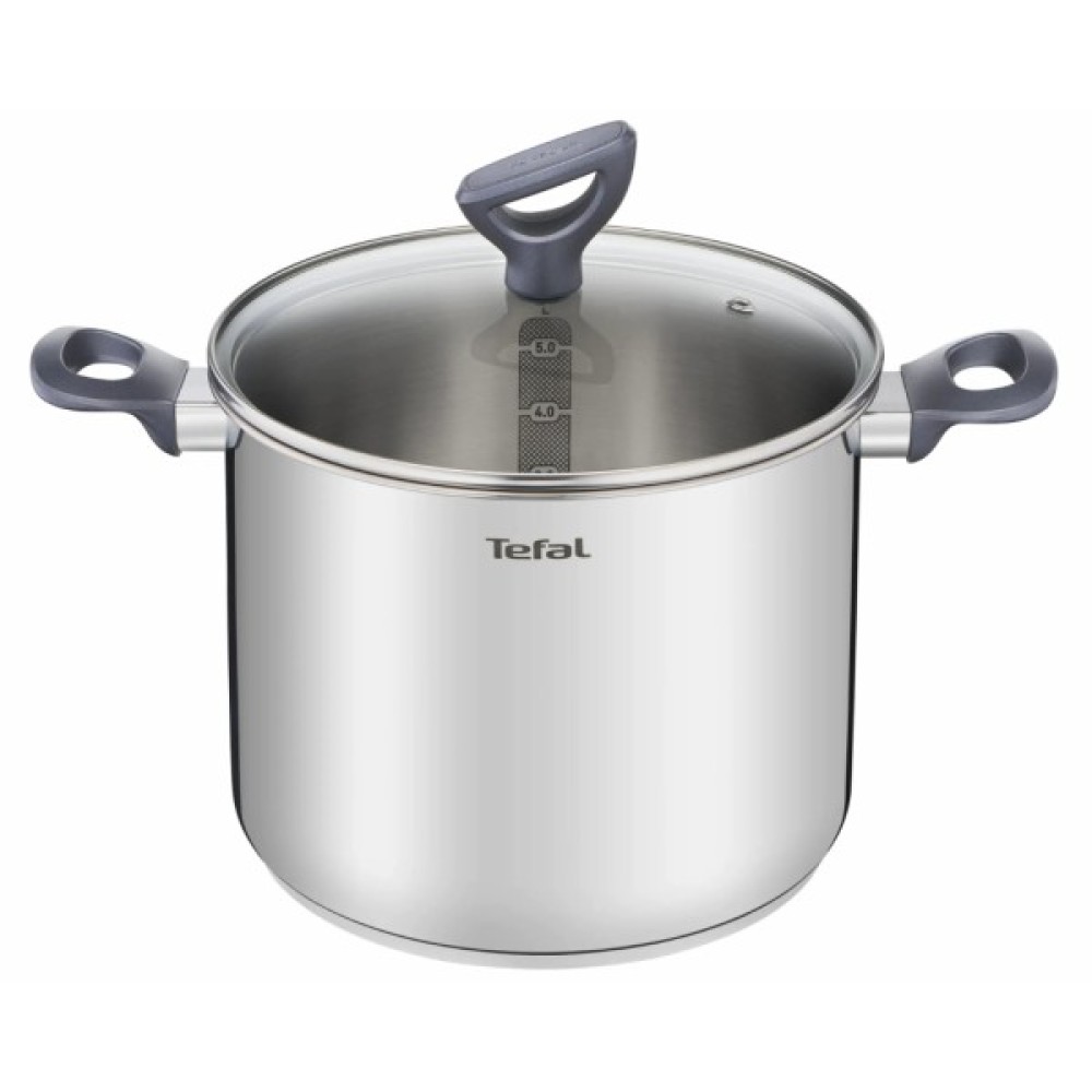 Набір посуду Tefal Daily Cook з 10 предметів виготовлений із нержавіючої сталі та розрахований на щоденне використання. У комплекті 4 каструлі, ковш і 5 скляних кришок із паровідводом. Товсте дно Full Induction забезпечує рівномірний нагрів, а мірні поділки всередині, ергономічні ручки, що залишаються холодними, та «напівстійка» кришка роблять процес приготування більш зручним. Набір сумісний з газовими, електричними, склокерамічними та індукційними плитами й можна мити в посудомийній машині.