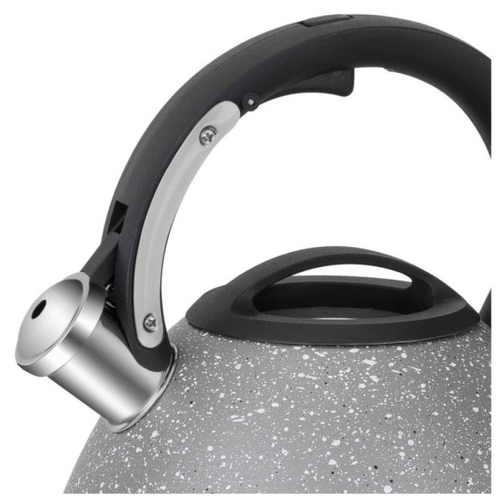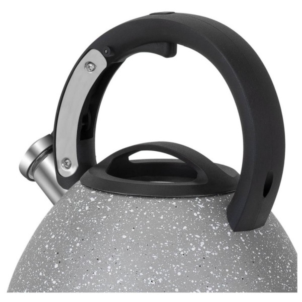 Чайник зі свистком колекції Lyra призначений для тих, хто любить бездоганний зовнішній вигляд, елегантне глянсове покриття та ретельно продуманий дизайн. Його округла плавна форма та стильні контури доповнять та прикрасять інтер'єр будь-якої кухні. Зручна ергономічна ручка не нагрівається, тому ризику отримання опіку повністю немає.