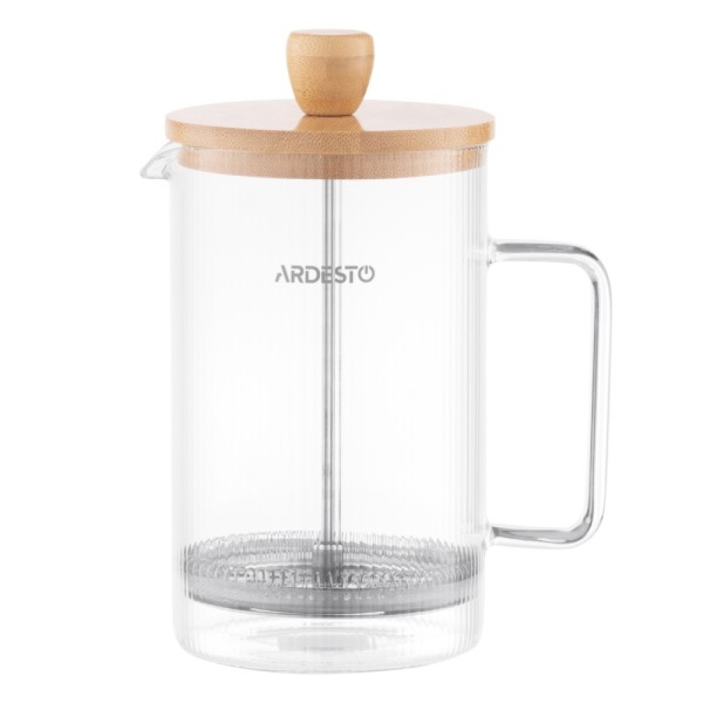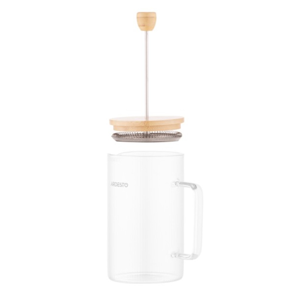 Френч-прес Ardesto Midori, 800мл, боросилікатне скло, бамбук, прозорий (AR1009WL)