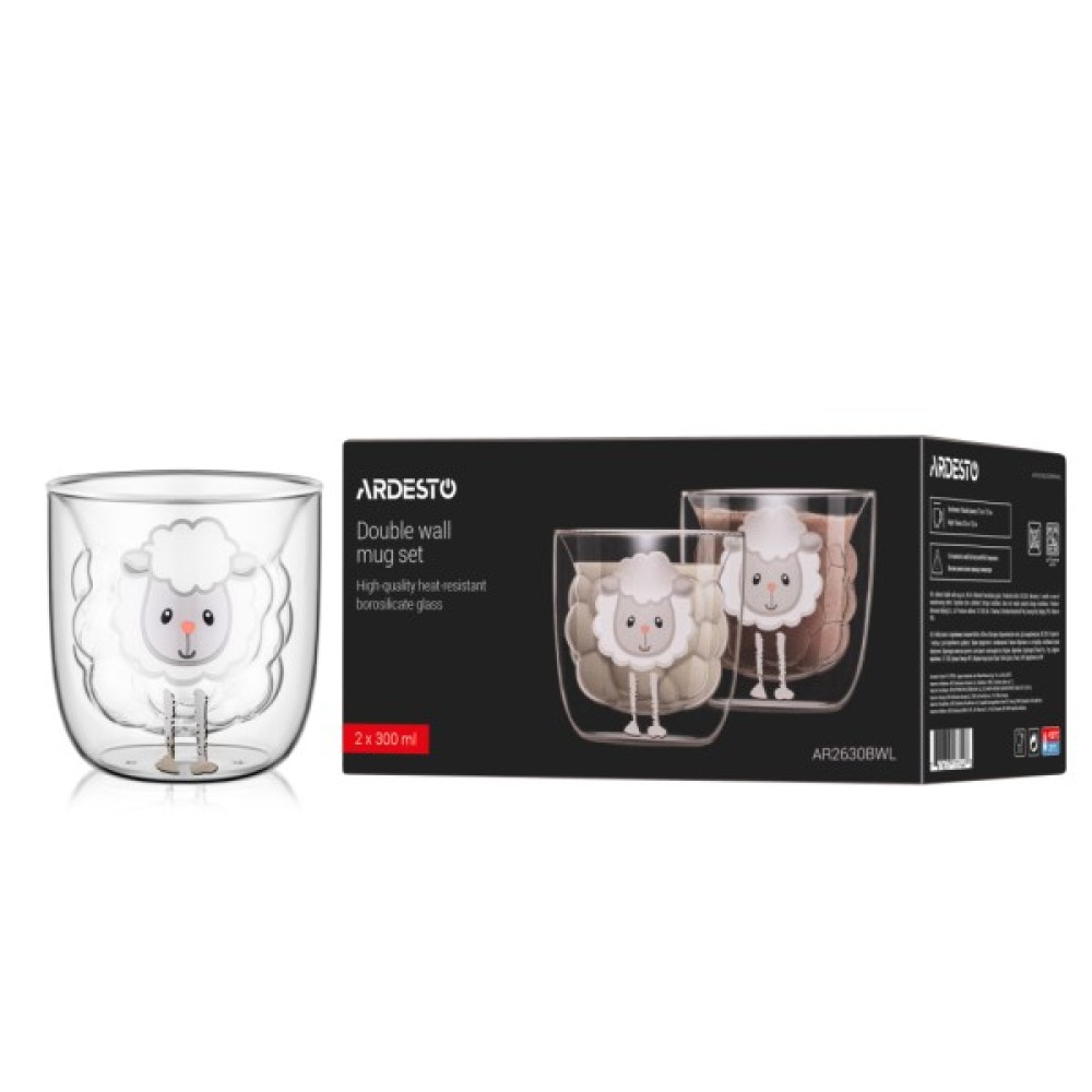 Набір, склянок, Ardesto, 300мл, 2шт, боросилікатне, скло, прозорий, AR2630BWL