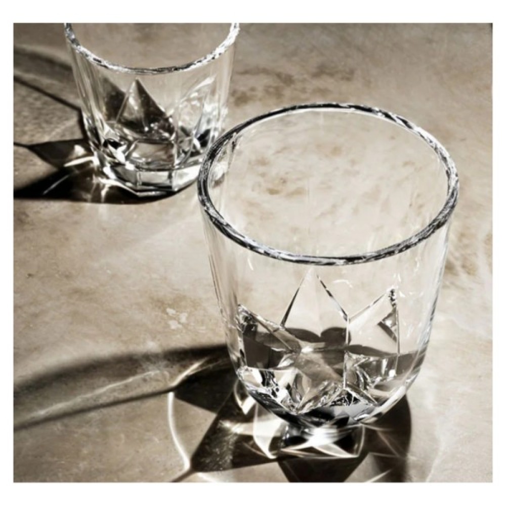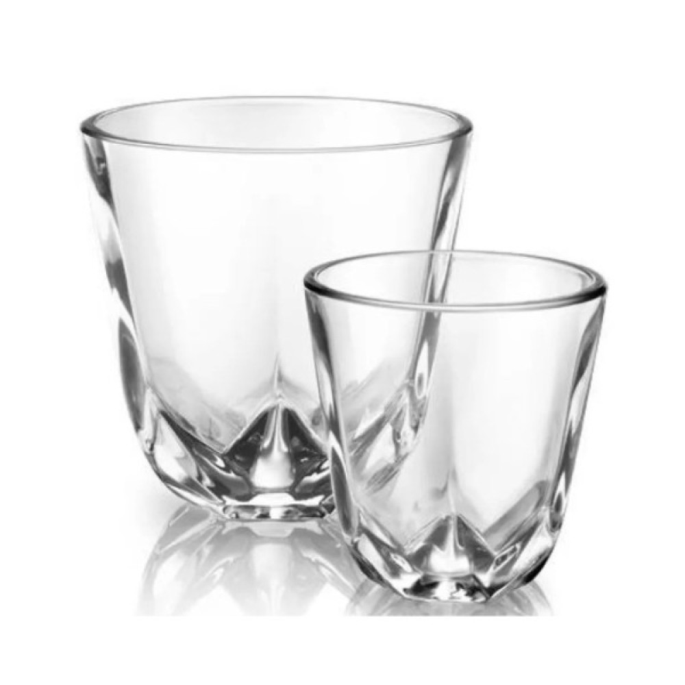 Ємності виготовлені з надміцного натрієво-кальцієвого скла. Світло красиво переломлюється в їхніх гранях, відкидаючи чарівні візерунки на поверхню стола. Завдяки округлому дизайну стакани ідеально лягають у долоню, а тепло м'яко передається через скло завтовшки 3.5 мм.