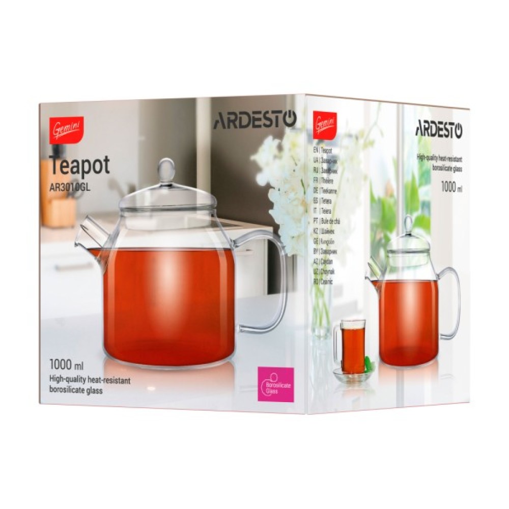 Абсолютно прозорий, легкий і надзвичайно елегантний – це все про заварник ARDESTO. Вироблений із боросилікатного скла, виріб заввишки 15 см має об’єм 1 літр. Заварник можна мити в посудомийній машині, до того ж виріб вирізняється термостійкістю, адже використаний для виготовлення матеріал має допустимий температурний діапазон від -20 до +150 °C.