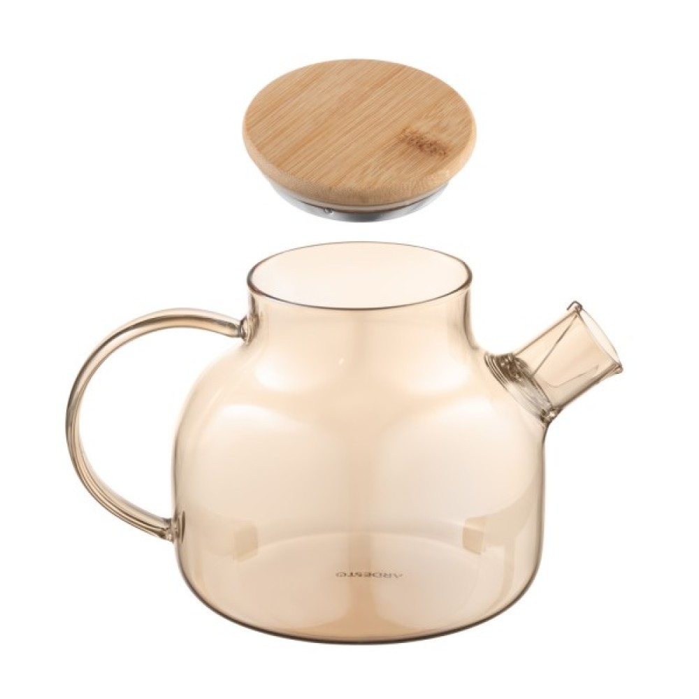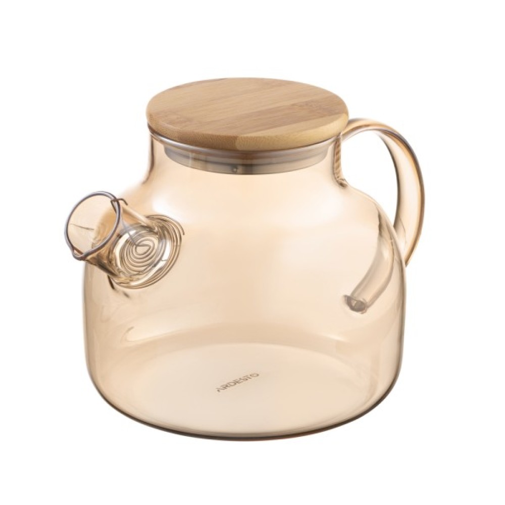 Заварник виготовлено з екологічного матеріалу – боросилікатного скла, яке не вбирає запахів, тому смак напою завжди залишатиметься незмінним. Матеріал вирізняється міцністю і стійкістю до перепадів температури, тож тривалий термін слугування і безпечне використання виробу гарантовано. Бамбукова кришка та золотистий відтінок скла додають виробу вишуканості. Об’єм моделі становить 1 000 мл. Це ліпший вибір для сімейних обідів, вечірок із друзями або для використання в офісі. Заварник згодиться для різних видів плит (газових, електричних, склокерамічних, галогенних), його можна підігрівати на помірному вогні та мити в посудомийній машині (крім бамбукової кришки).