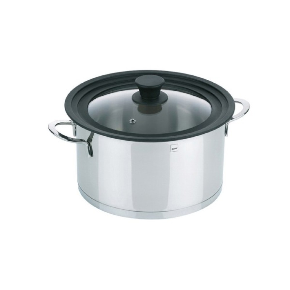 Особливості силіконовий ободок; адаптується до різних розмірах каструль на різних рівнях; отвір на кришці для виходу пари
