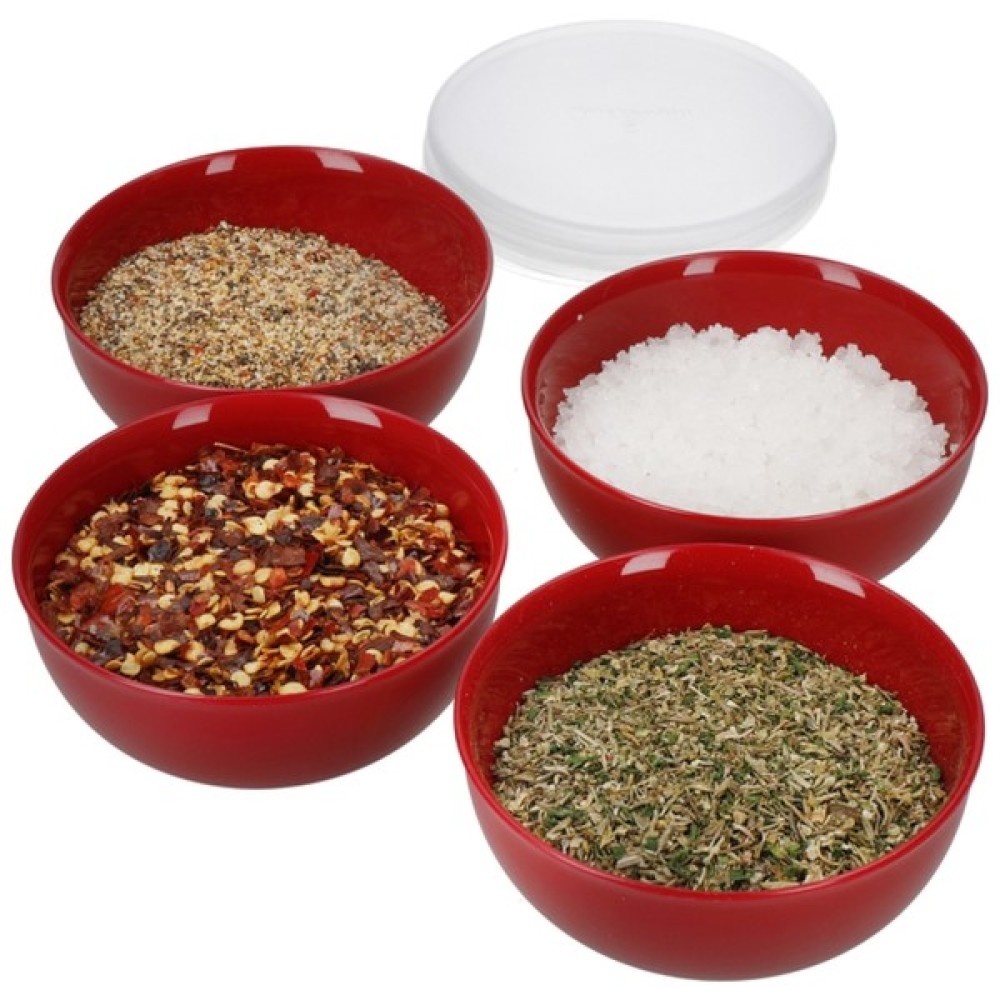 Набір мисок-приправниць KitchenAid Universal, 4 шт, 28 г, червоний (KQG177BXERE) — це функціональний і стильний набір, який стане незамінним помічником на вашій кухні. Ідеально підходить для зберігання та сервірування приправ, спецій або соусів.