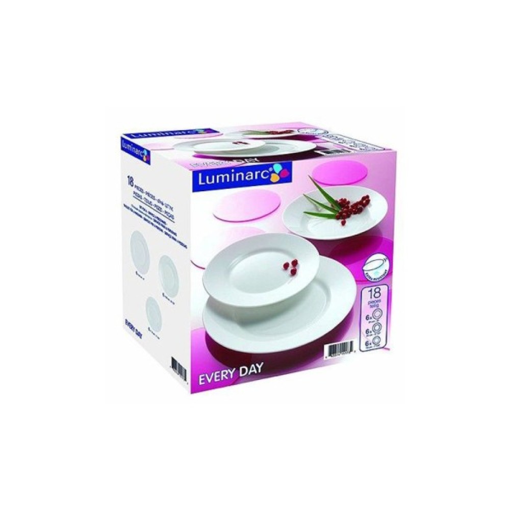 Сервіз столовий Luminarc Everyday з 18 предметів — сервіз на шість персон. Виготовлений з ударостійкого скла. Набір зі скла гладкої фактури бездоганно білого кольору прекрасно підійде і для свята, і для повсякденного сервірування. Можна мити в посудомийній машині. Можна використовувати в мікрохвильовці. До набору входять 18 предметів.
