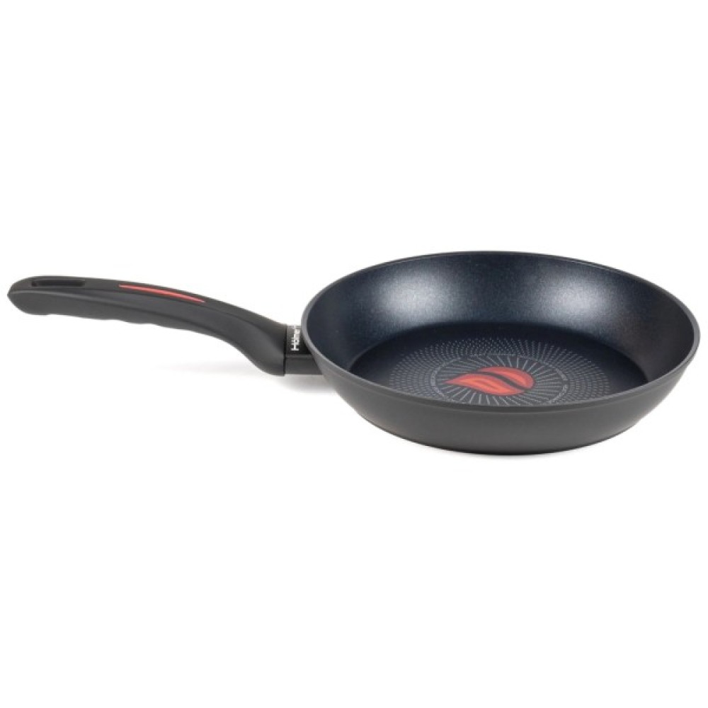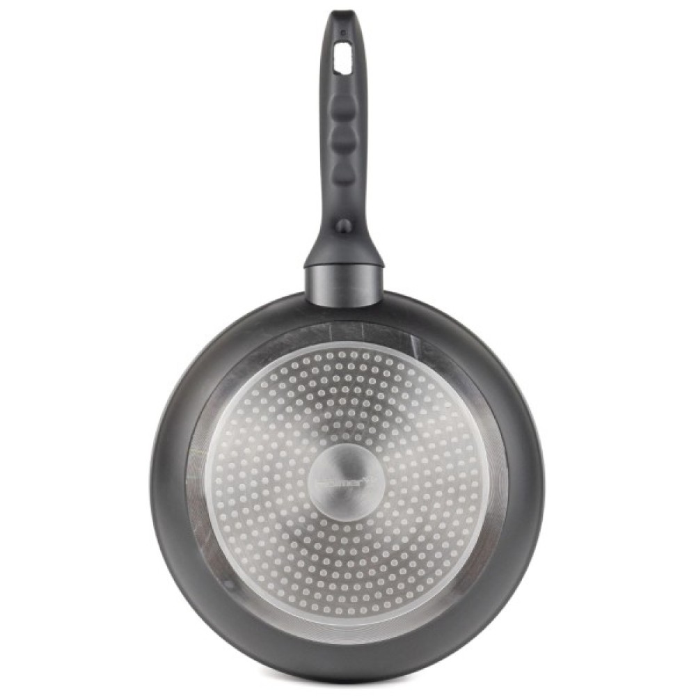 - Товщина стінок сковороди складає 2,3 мм, а товщина дна - 2,5 мм, що забезпечує рівномірне та ефективне розподілення тепла, що сприяє якісному готуванню їжі без перегорання.