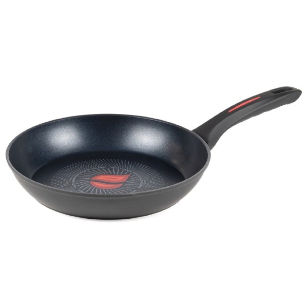 - У центрі робочої поверхні розміщений індикатор у вигляді вогню, який відображає ступінь нагрівання сковороди, надаючи зручність та контроль над процесом готування.