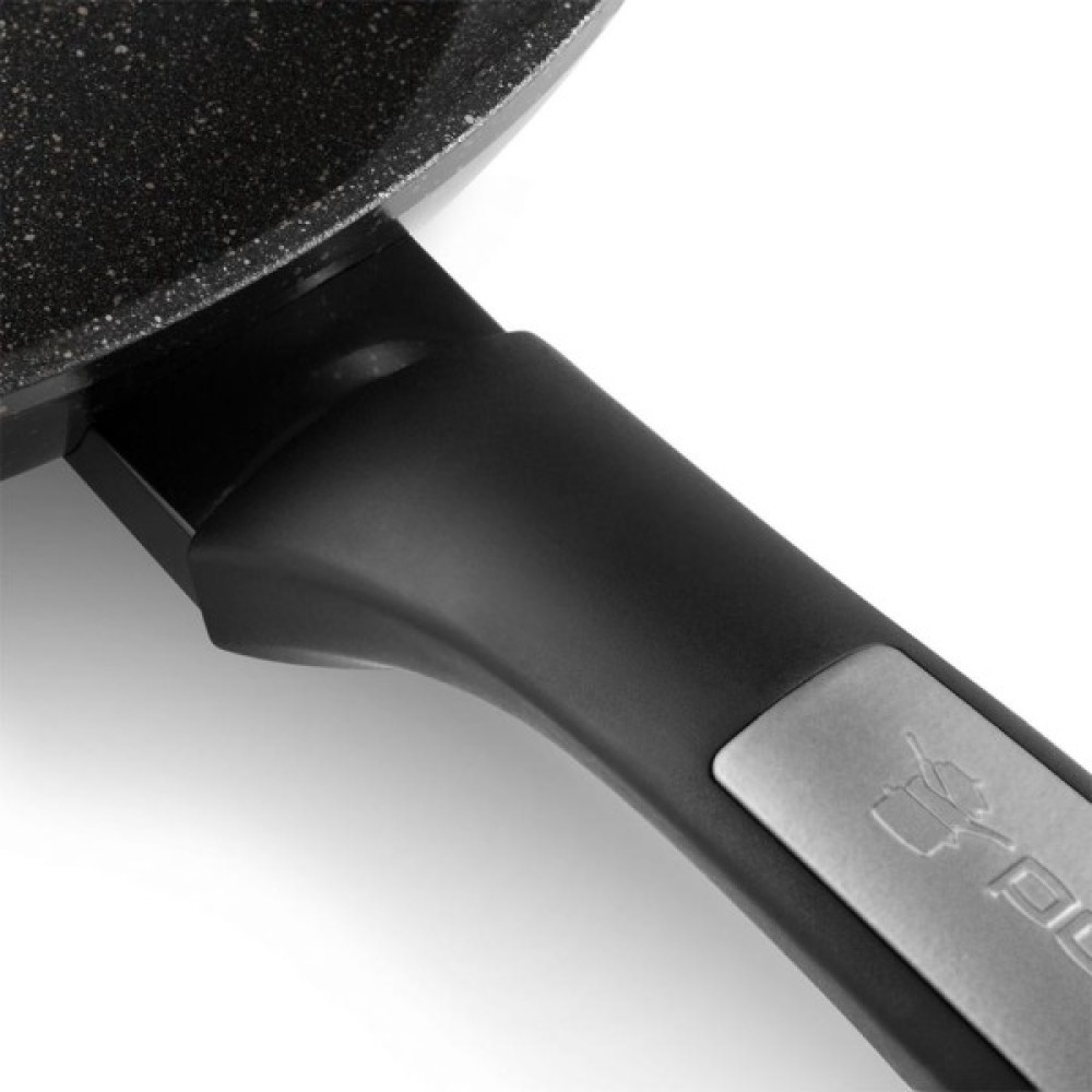 Сковорода Polaris Monolit виготовлена з високоякісного кованого алюмінію. Внутрішнє покриття - Megastone PRO-5 інноваційне 5 шарове антипригарне покриття з керамічною крихтою. Micro-сотова структура поверхні рівномірно розподіляє масло і утримує його на місці. Термостійке зовнішнє покриття. Ручка - ергономічна бакелітова з покриттям Soft Touch. Підходить для всіх типів плит, включаючи індукційну.
