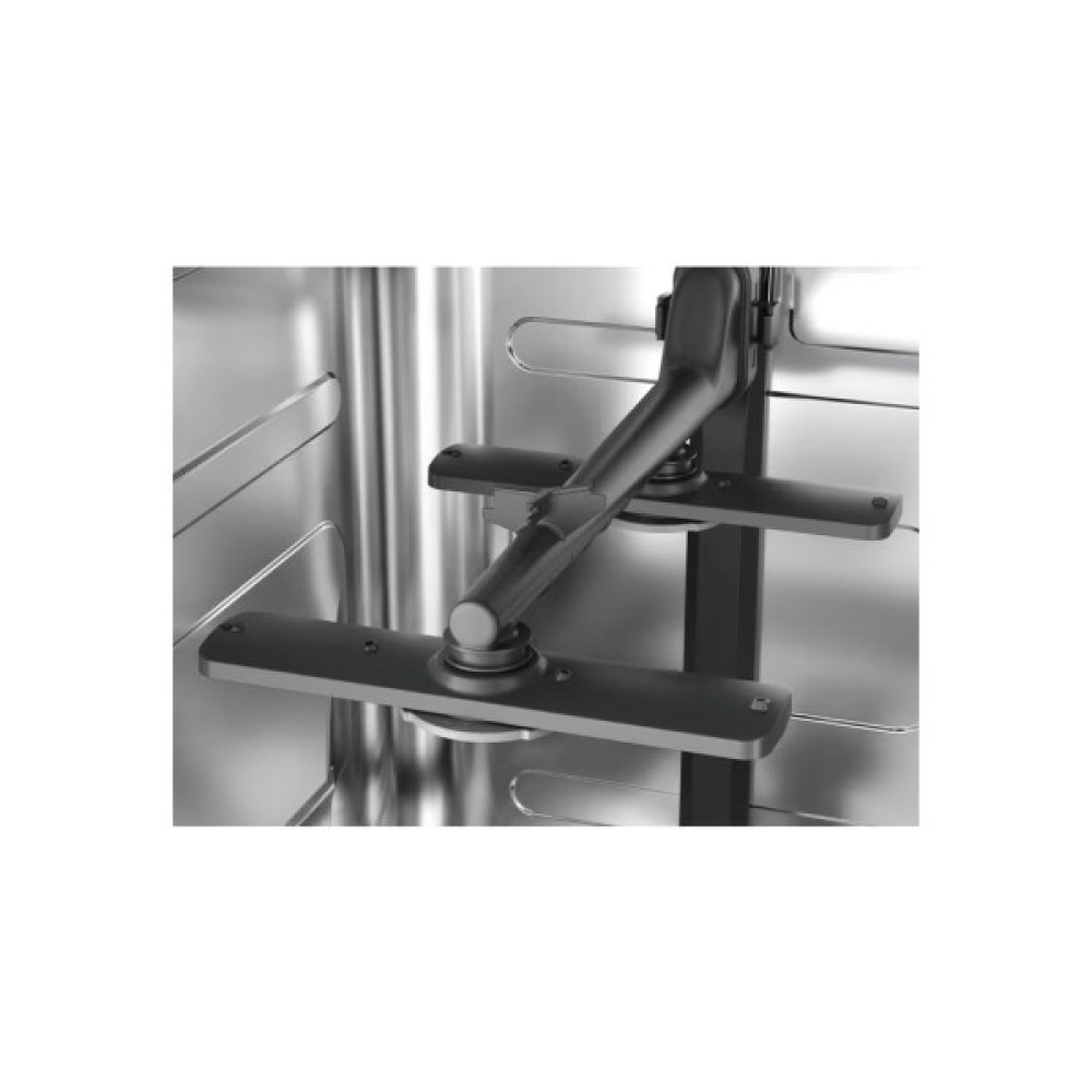 Внутрішнє оснащення включає верхній кошик з FlexiLift і полицями Soft Spikes, нижній кошик зі складними тримачами та розпилювач FlexiSpray Satellite. Рівень шуму складає 46 дБ, споживання води — 9.9 л, електроенергії — 0.754 кВт*год на цикл. Клас енергоспоживання A+ (E), миття А, сушіння А. Інверторний мотор гарантує тиху та ефективну роботу, а корпус із нержавіючої сталі робить модель стильною та довговічною.