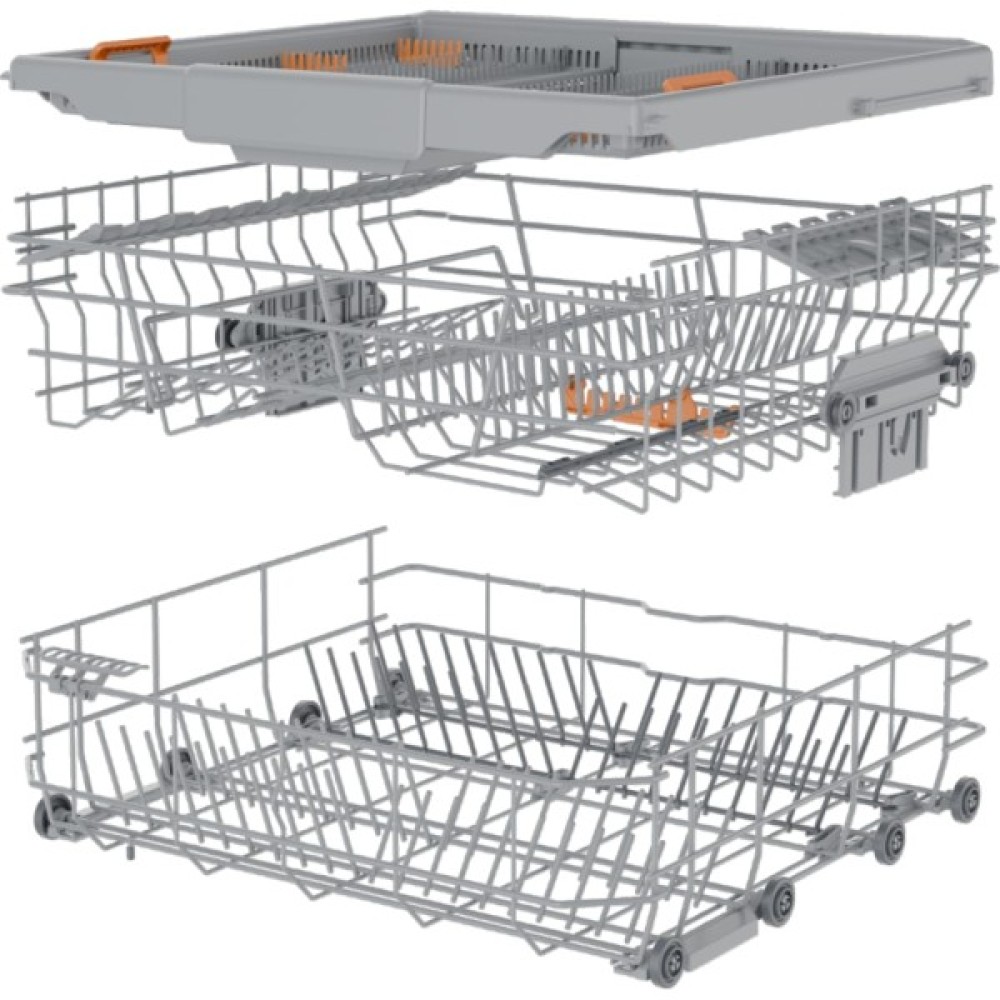 Щодо внутрішнього оснащення, Gorenje GV16E1 демонструє справжню продуманість. Верхній кошик має широку сітчасту корзину, складані полички для чашок та спеціальні тримачі для келихів. Нижній кошик обладнано складаними тримачами для тарілок, а верхній лоток для столових приборів – знімними та роздільними кошиками на телескопічних напрямних. Завдяки цим елементам, ви зможете легко організувати простір всередині камери з нержавіючої сталі так, як вам зручно. Gorenje GV16E1 також має самоочисну систему фільтрації та функцію самоочищення, що робить її догляд максимально простим. При річному споживанні води 3052 літри та річному споживанні електроенергії 0,93 кВт/год за цикл (при класі енергоспоживання D) та з рівнем шуму 44 дБ, ця модель є ефективною та тихою. При вазі всього 29.8 кг та габаритах 81.6x59.8x55.5 см, вона легко інтегрується в будь-яку кухню.
