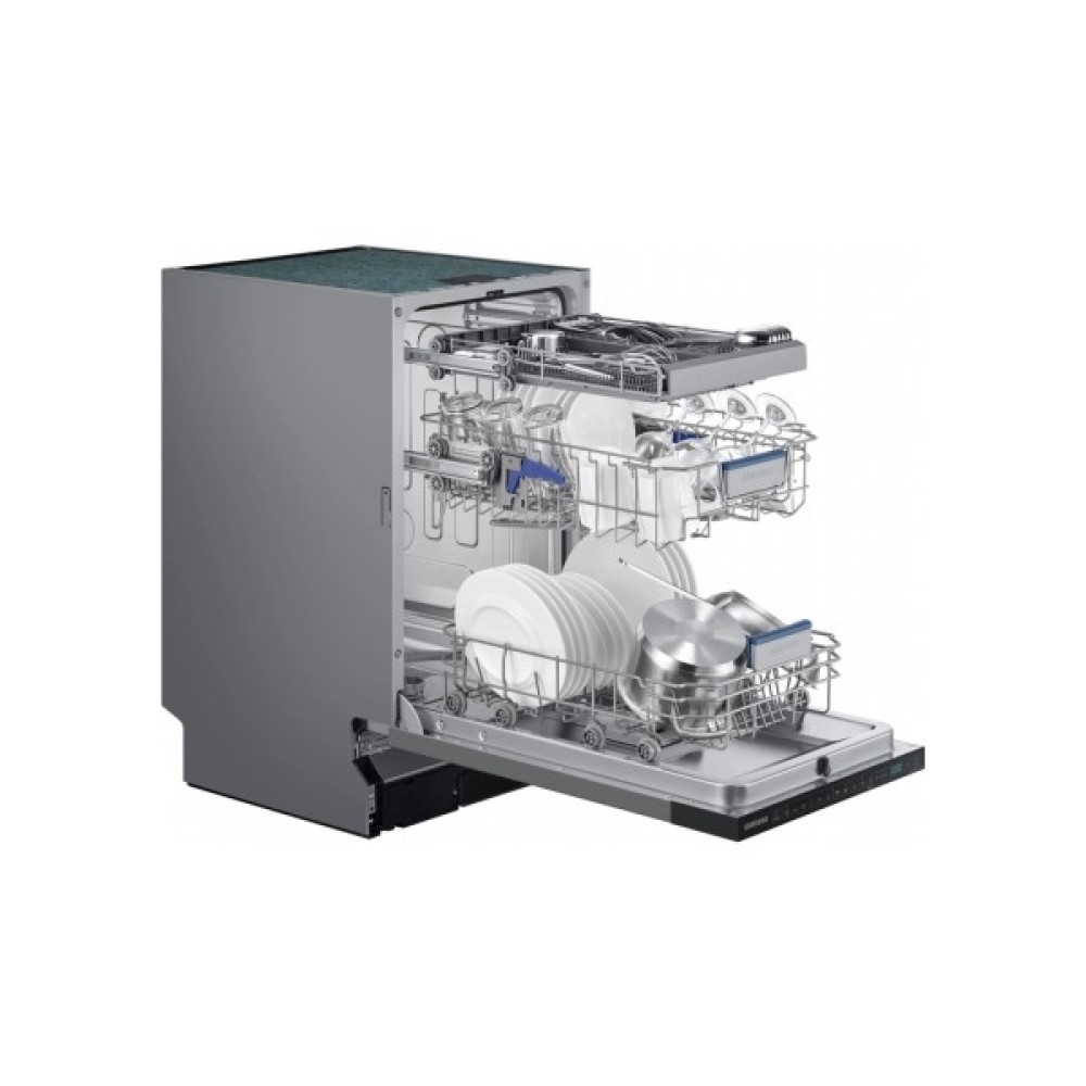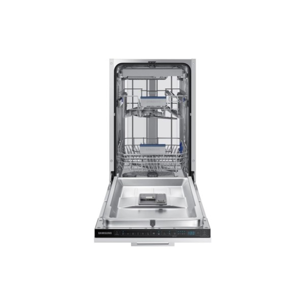 Вбудована посудомийна машина Samsung DW50DG450B00UA — це вузька (45 см) модель, яка поєднує компактність, функціональність і сучасні технології для ефективного миття посуду. Модель вміщує до 10 комплектів посуду та працює тихо — рівень шуму складає 44 дБ, що робить її комфортною для щоденного використання.