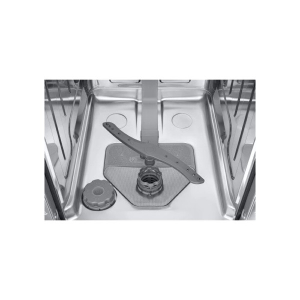 Серед ключових функцій — автоматичне відкриття дверцят після завершення програми, три кошики для зручного розташування посуду, захист від дітей та від протікання, режим половинного завантаження, таймер відстрочки старту та сенсорне керування з LED-індикацією. Машина оснащена шістьма програмами миття та конденсаційною системою сушіння класу A, що забезпечує ідеально сухий посуд.