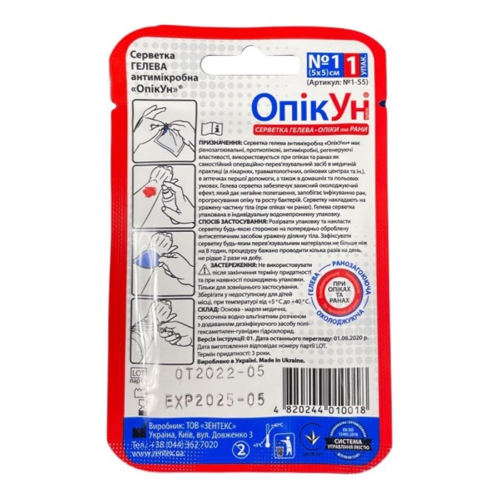 Гелеві антимікробні серветки «ОпікУн» - ефективний засіб першої допомоги при опіках та відкритих ранах.