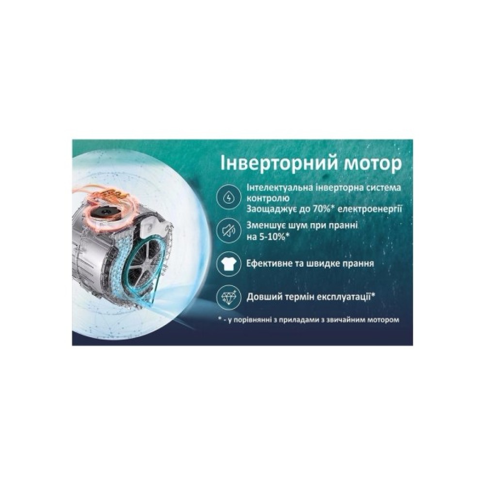 Однією з найважливіших характеристик є інверторний двигун, який забезпечує тиху та надійну роботу, значно підвищуючи довговічність та енергоефективність пристрою. Завдяки класу енергоспоживання A+++, пральна машина пропонує економію електроенергії, що особливо актуально в умовах зростаючих тарифів на комунальні послуги. Максимальна швидкість віджиму до 1000 об/хв разом з класом віджиму C та класом прання A забезпечує бездоганний результат, зберігаючи вашу білизну в ідеальному стані після кожного циклу.