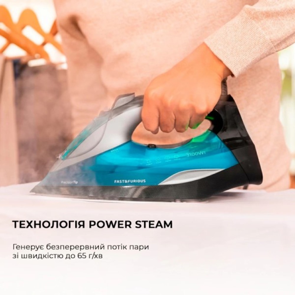 Сенсорний датчик, що підвищує ефективність та економить енергію, з 5 рівнями температури підошви, що дозволяють регулювати температуру відповідно до вашого одягу. Технологія Power Steam, що забезпечує безперервне виробництво пари зі швидкістю до 65 г/хв. Завдяки системі захисту від крапель Drip Block цей утюг піклується про ваш одяг, запобігає появі плям і забезпечує правильну роботу виробу. Він включає в себе систему захисту від накипу Cyclo Clean, фільтрацію, яка гарантує, що известь не накопичується, а утюг буде використовуватися протягом тривалої години.