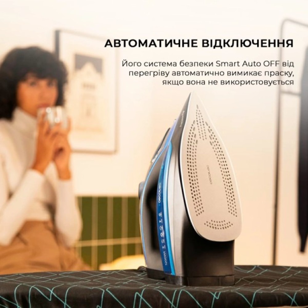 CECOTEC IronHero 3200 i-Pump оснащений системою безпеки Smart Auto OFF, яка автоматично відключає пристрій під час перегріву або тривалого невикористання. Це запобігає потенційно небезпечним ситуаціям і забезпечує вашу безпеку. Ви можете бути впевнені у надійності та захищеності праски завдяки цій розумній функції.