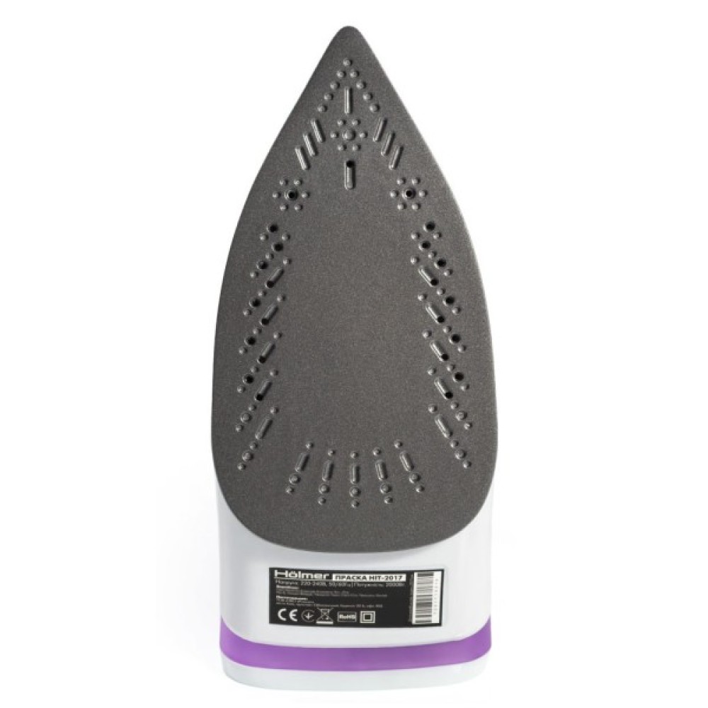 Праска Hölmer HIT-2020 для сухого прасування та з парою, має потужність 1700 Вт (час нагріву max ~28 сек), паровий удар 100 г/хв, постійну подачу пари 30 г/хв. Тефлонове покриття підошви забезпечує легке ковзання тканин різних типів, розгладжуючи навіть найскладніші ділянки.