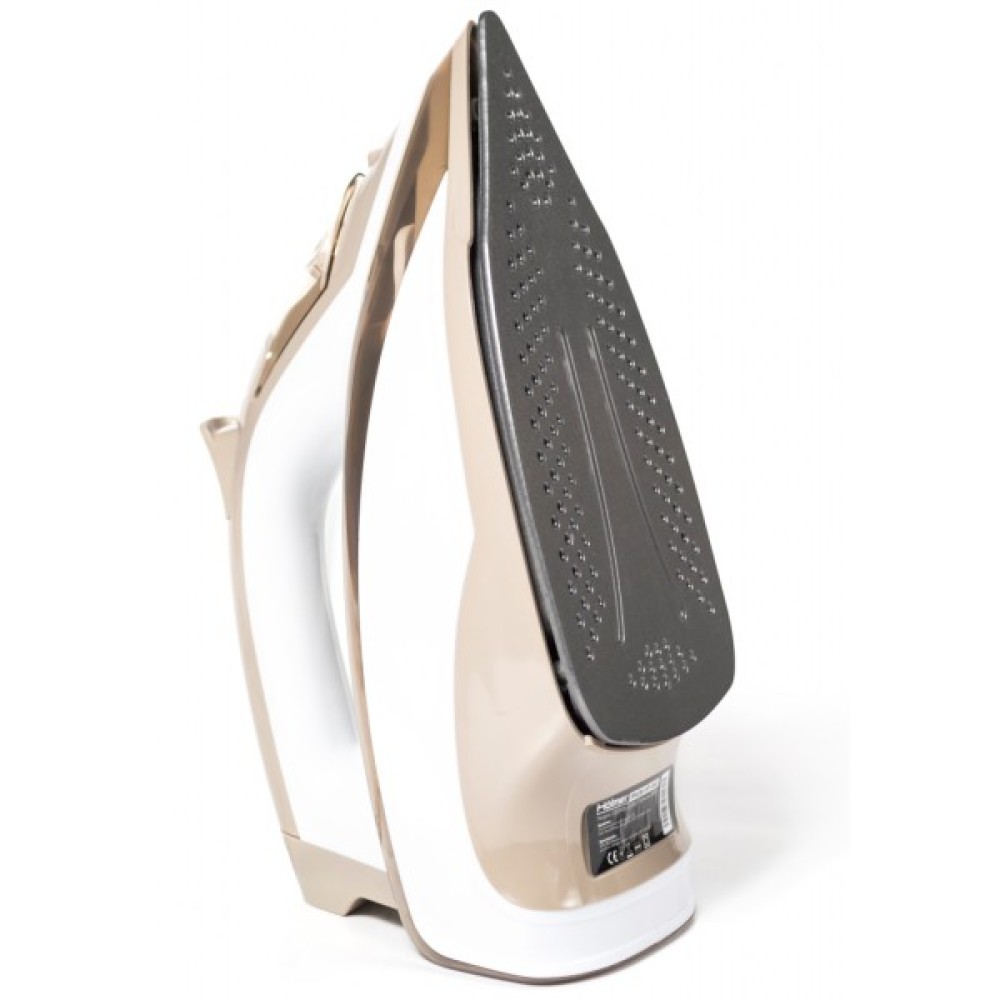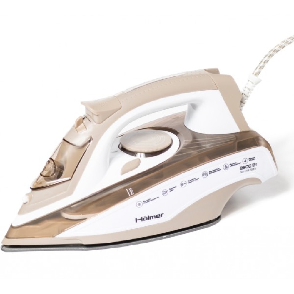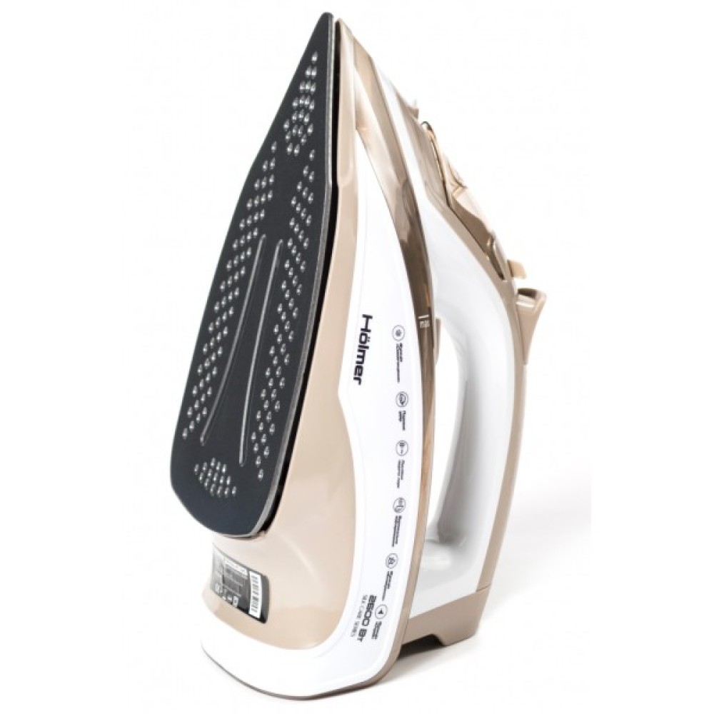 Праска Hölmer HIT-2642 для сухого прасування і з парою, має потіжність 2600 Вт (час нагрівання max ~31 сек), паровий удар 140 г/хв, постійну подачу пари 40 г/хв. Тефлонове покриття підошви забезпечує легке ковзання по тканинах різних типів, розгладжуючи навіть найскладніші ділянки.