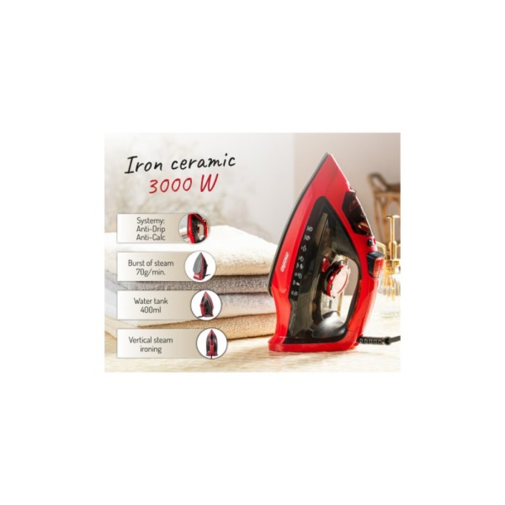 Додаткові переваги включають великий резервуар, який дозволяє рідше наповнювати воду під час прасування. Загострений кінчик підошви полегшує доступ до важкодоступних місць, таким як навколо кнопок, комірці і т. Д. Керамічна підошва збільшує ковзання - плавне ковзання по тканині. Шнур живлення 1,50м. Функція автоматичного відключення відключає електроживлення праски, якщо його залишили в вертикальному положенні через 8 хвилин, в горизонтальному положенні через 30 секунд. Пристрій сигналізує про включення функції автоматичного відключення 5-кратним звуковим сигналом.
