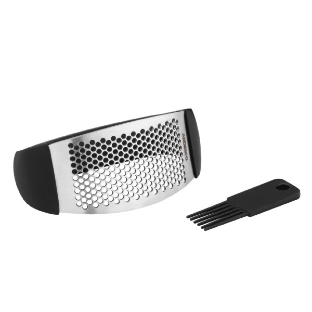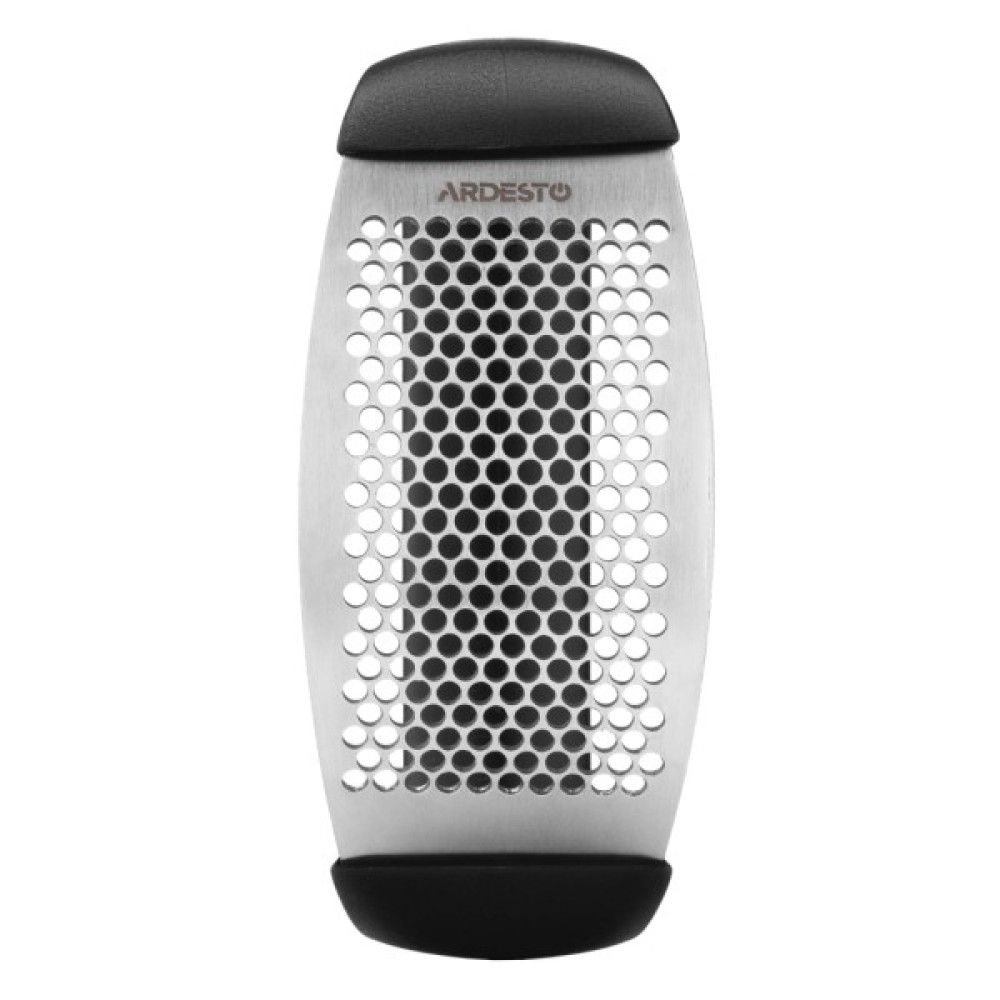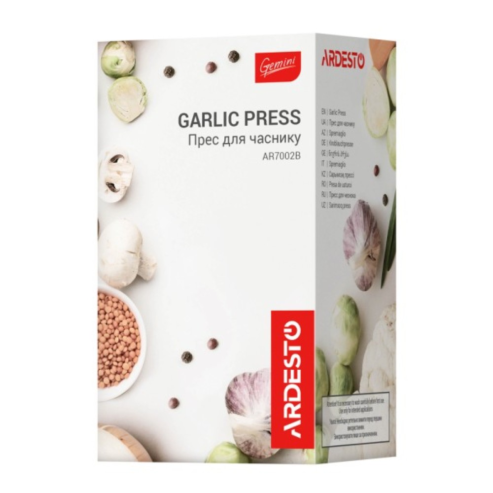 Прес для часнику ARDESTO Gemini виготовлено у стильному дизайні з нержавіючої сталі – безпечного та довговічного матеріалу. Оснащено зручним руків’ям із пластику чорного кольору. Завдяки компактному розміру, який становить 12 × 5 × 7 см, приладдя зручно зберігати. Можна мити в посудомийній машині.