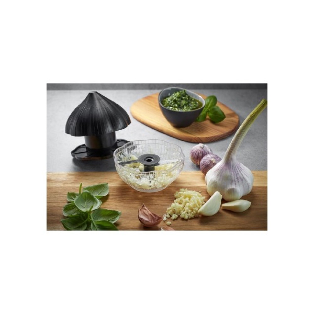 Кілька зубчиків часнику можна миттєво подрібнити за допомогою складної технології тиску - це забезпечується трьома лезами з високоякісної сталі та вбудованим дефлектором.