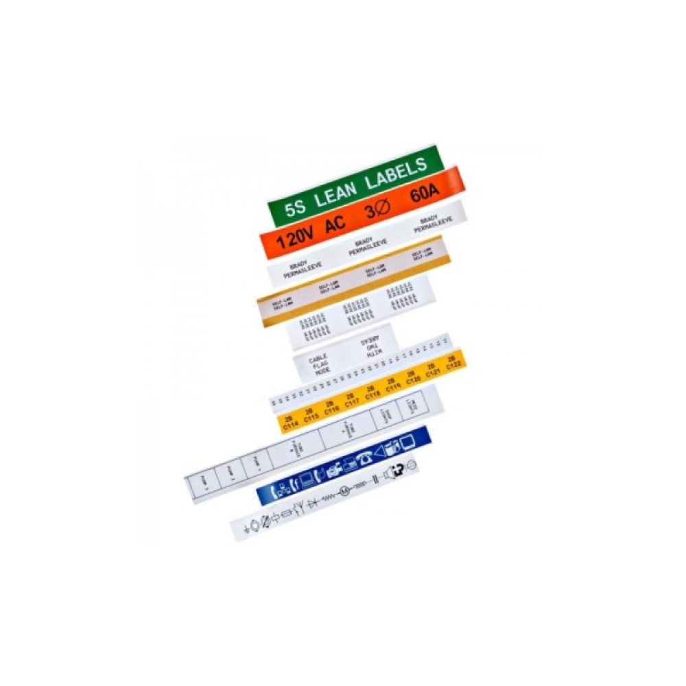 Цвета маркировки: Черный на белом, черный на желтом, черный на прозрачном, белый на синем, белый на зеленом, черный на оранжевом, белый на красном, белый на фиолетовом, белый на коричневом, белый на прозрачном, черный на сером, белый на черном