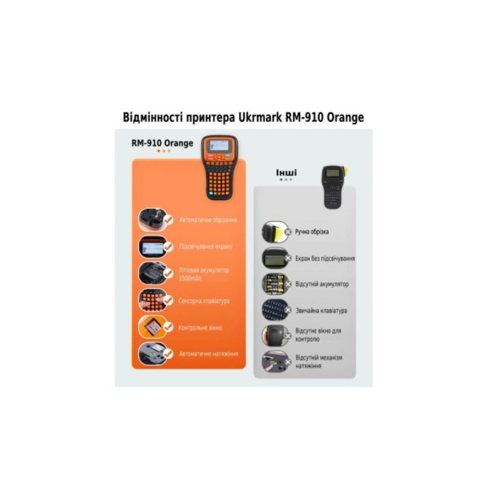UKRMARK RM-910 Orange - портативний термотренсферний принтер для друку етикеток, QR та штрих-кодів.