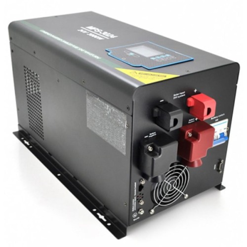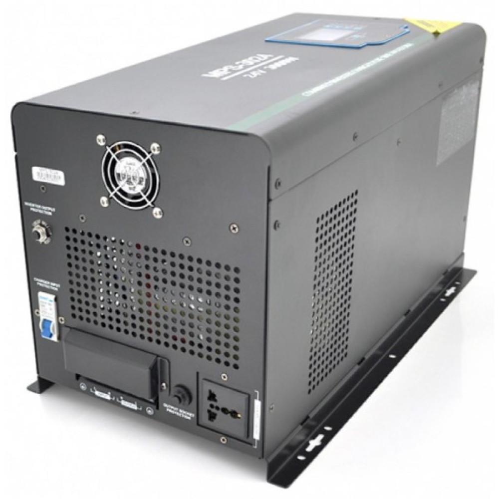 Виконаний у стильному чорному металевому корпусі, цей пристрій має вбудований РК-дисплей, що дозволяє зручно відстежувати стан системи та параметри роботи. Унікальність моделі полягає в можливості підключення акумуляторної батареї 48В, що значно розширює час автономної роботи.