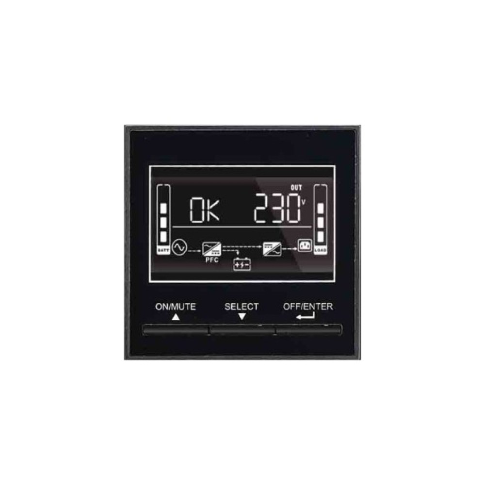 Цей ДБЖ обладнаний багатофункціональним графічним РК-дисплеєм, що забезпечує легкий доступ до всіх параметрів і стану системи. Взаємодія з комп’ютером здійснюється через інтерфейси USB та RS-232, дозволяючи налаштування та моніторинг за допомогою безкоштовного програмного забезпечення TecnoManager.