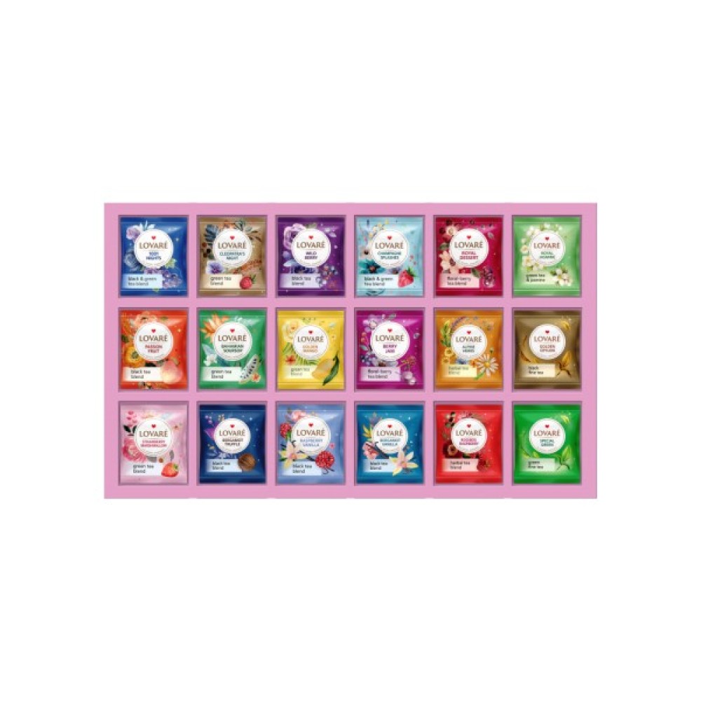 Супер-набір для грандіозної вечірки - чай для кожного гостя, навіть з самим вимогливим смаком. Набір Lovare "Great Partea" також стане прекрасним подарунком для шанувальників якісного чаю, 18 видів з 5 конвертів.