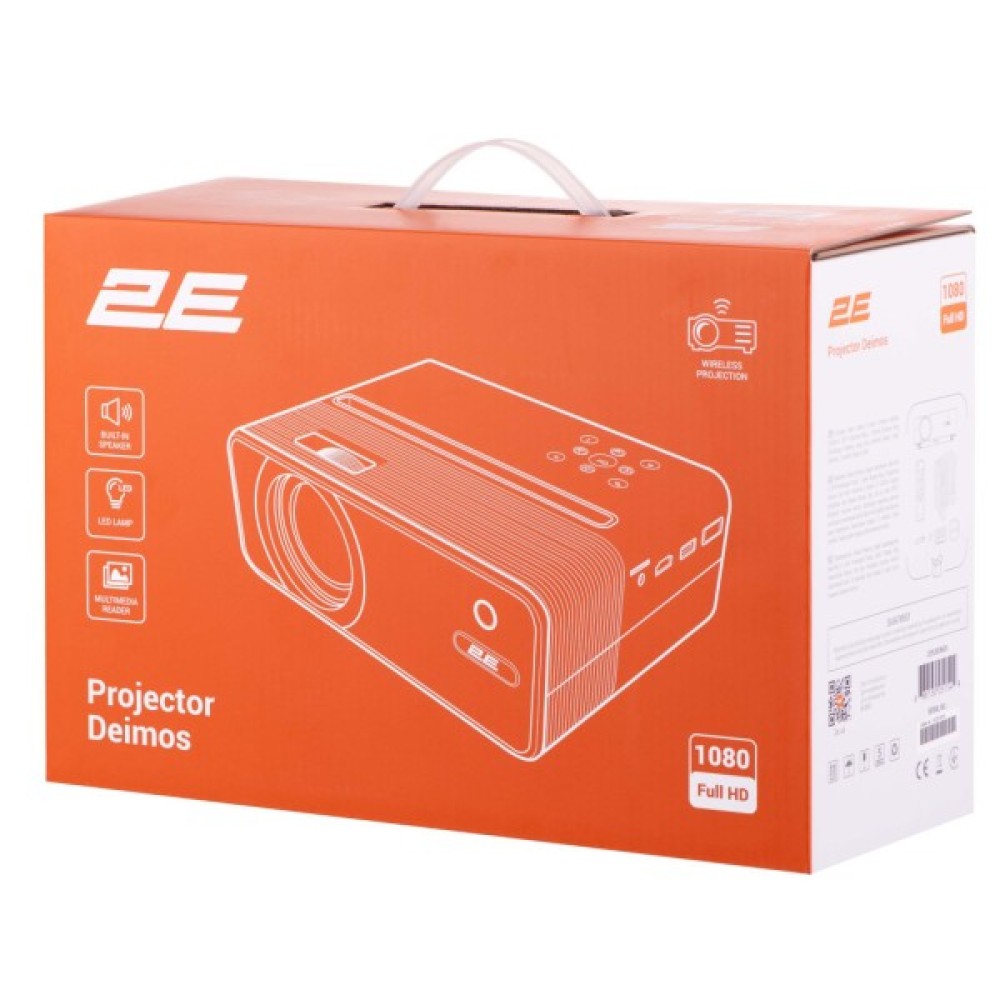Проектор 2E Deimos забезпечує чітке зображення завдяки технології LCD та роздільній здатності Full HD (1920х1080). Модель має потужне джерело світла, світловий потік становить 200 лм – запорука насиченої картинки. Контрастність 1 000:1 гарантує глибокий чорний і яскравий білий колір; з відстані 3,5 м діагональ проекції становить 100”.