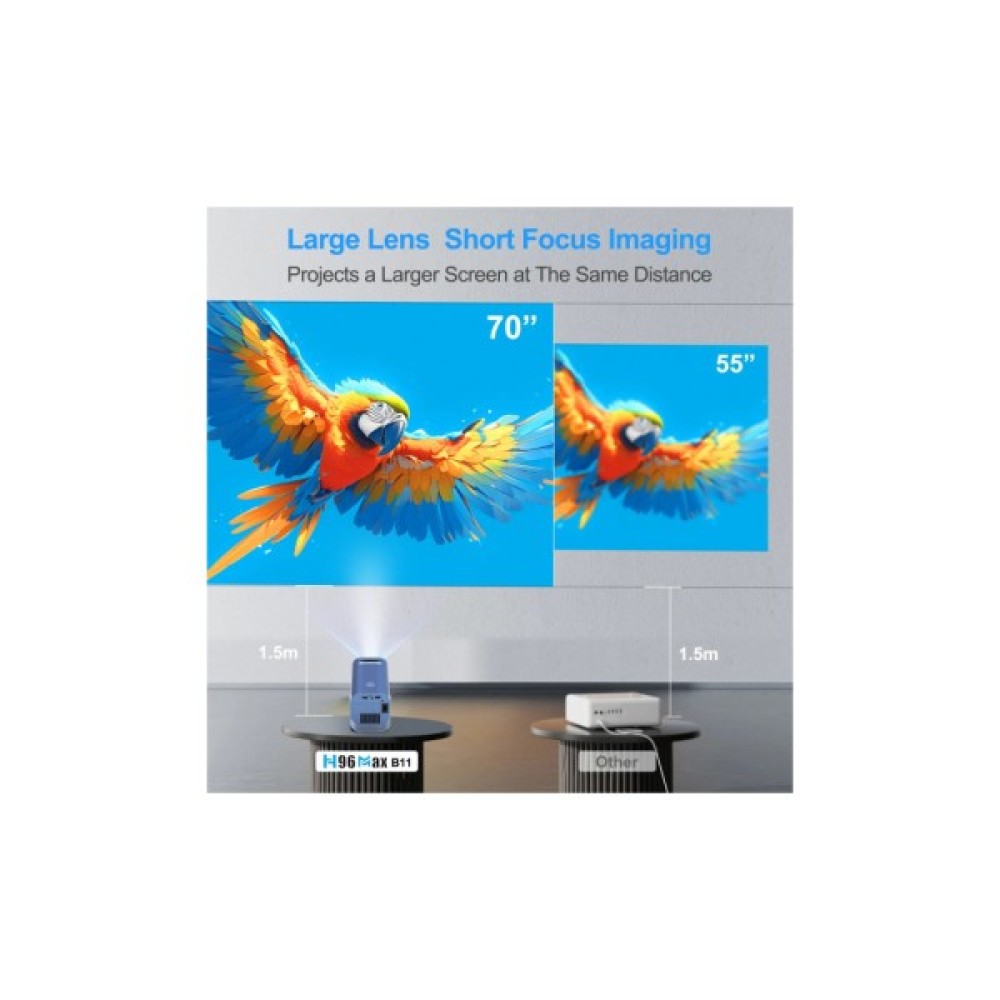 Проєктор H96 MAX B11 - портативний центр розваг нового покоління, який подарує яскраві враження від перегляду у будь-якому місці. Цей легкий та компактний проєктор поєднує в собі гнучкість, інтелектуальні функції та високу якість зображення.