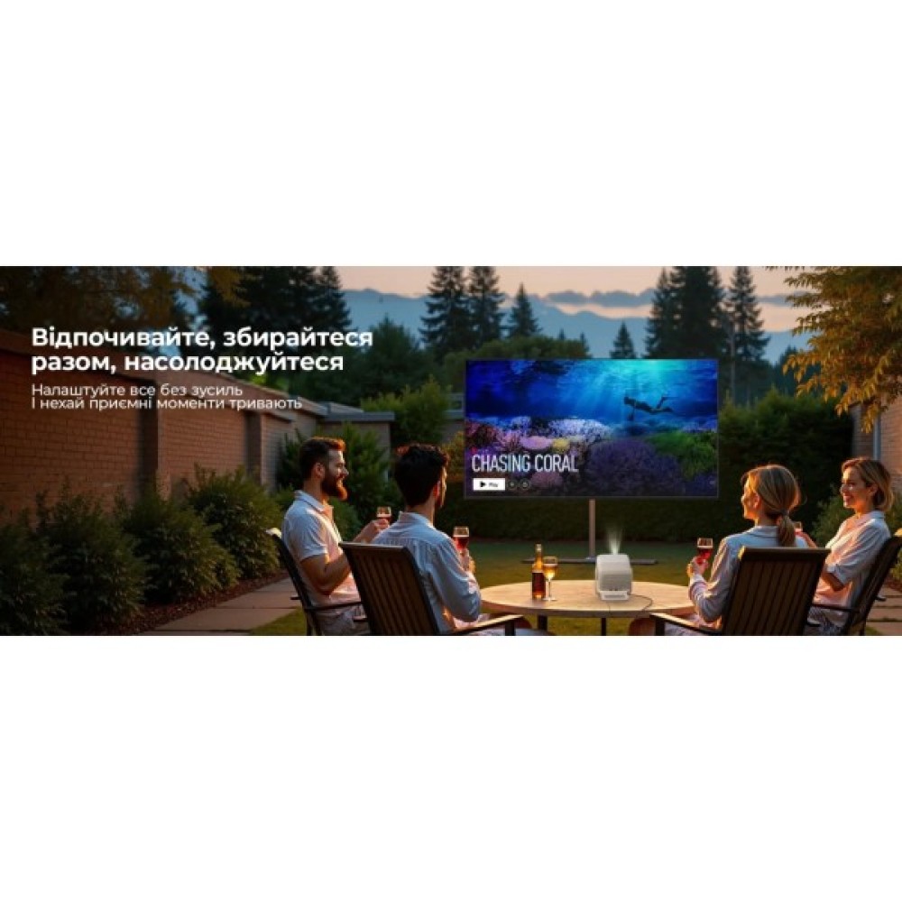 Керування проектором інтуїтивне та зрозуміле: інтерфейс дозволяє швидко підключати різні пристрої та запускати контент без зайвих складнощів. Завдяки цьому кожен користувач, незалежно від рівня технічних навичок, зможе насолоджуватися зручним переглядом.