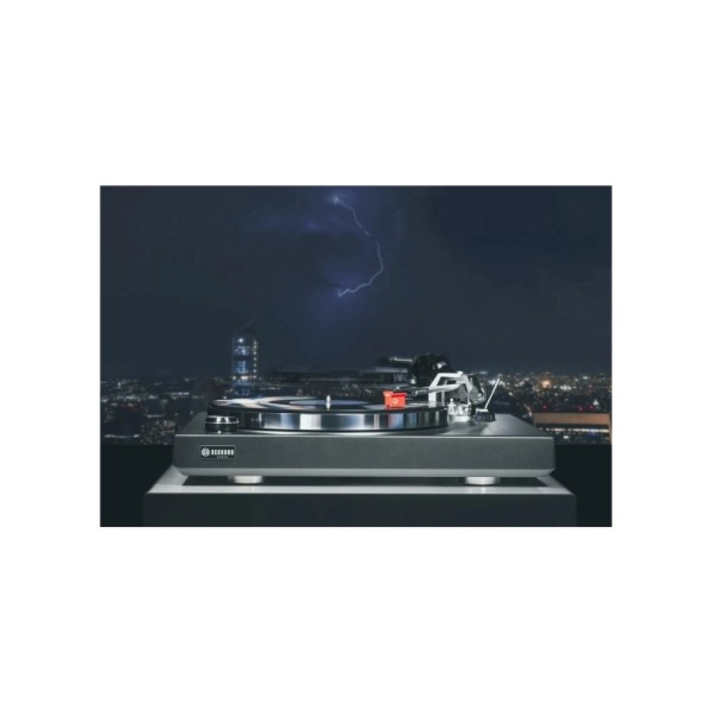 З моделлю REKKORD M600 ми розширюємо наш асортимент ручних програвачів аудіофільською топовою моделлю. Програвач вмонтовано в благородне і водночас масивне дерев'яне шасі, а тому він є родзинкою будь-якої кімнати для прослуховування, як з точки зору звуку, так і зовнішнього вигляду. M600 оснащений 8,6-дюймовим алюмінієвим тонармом, спеціально розробленим для цього програвача. Регульований за висотою кронштейн має 4-сторонній кульковий карданний підшипник, виготовлений із цільних алюмінієвих блоків, і особливо стійку до крутіння карбонову головку тонарма. Важкий алюмінієвий диск оснащений демпфуючою заливальною сумішшю всередині для мінімізації резонансів. Це також збільшує масу і, таким чином, забезпечує найбільш точні та стабільні швидкості. Крім того, всередині є демпфуючий заливальний склад для мінімізації резонансів. Опціонально M600 можна придбати з попередньо налаштованим картриджем Ortofon Quintet Red. Він вражає високою динамікою і першокласною роздільною здатністю. Просторове уявлення і тональний баланс чудові, що робить його ідеальним партнером для REKKORD M600.