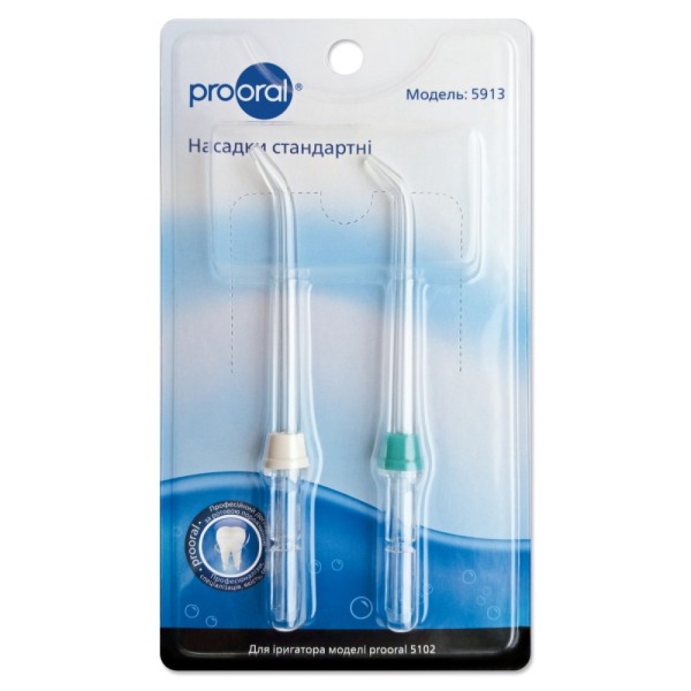 Насадки для іригатора Prooral5102 — видаляють бактерії з глибоких міжзубних проміжків і вздовж лінії ясен. Масажують і стимулюють ясна. Підходять для очищення ортодонтичних конструкцій.