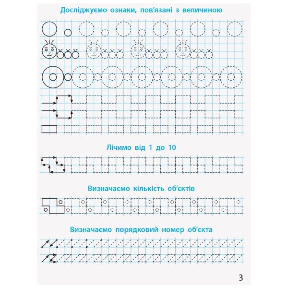 Система завдань, поданих у посібнику, спрямована на формування графічних навичок першокласників, навичок написання цифр, у тому числі в учнів, які пишуть лівою рукою, на розвиток дрібної моторики, просторової уяви та орієнтування на площині зошита. Усі матеріали подані з урахуванням вікових особливостей учнів і можуть бути використані як для фронтальної