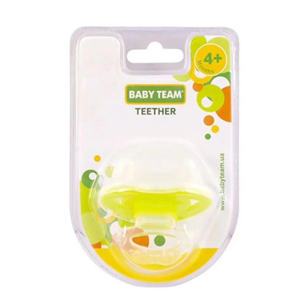 Прорізувач-масажер Baby Team виготовлений із м'якого силікону у формі пипки. Він м'яко масажує ясна малюка та знімає свербіж, що зменшує дискомфорт під час появи перших зубів.