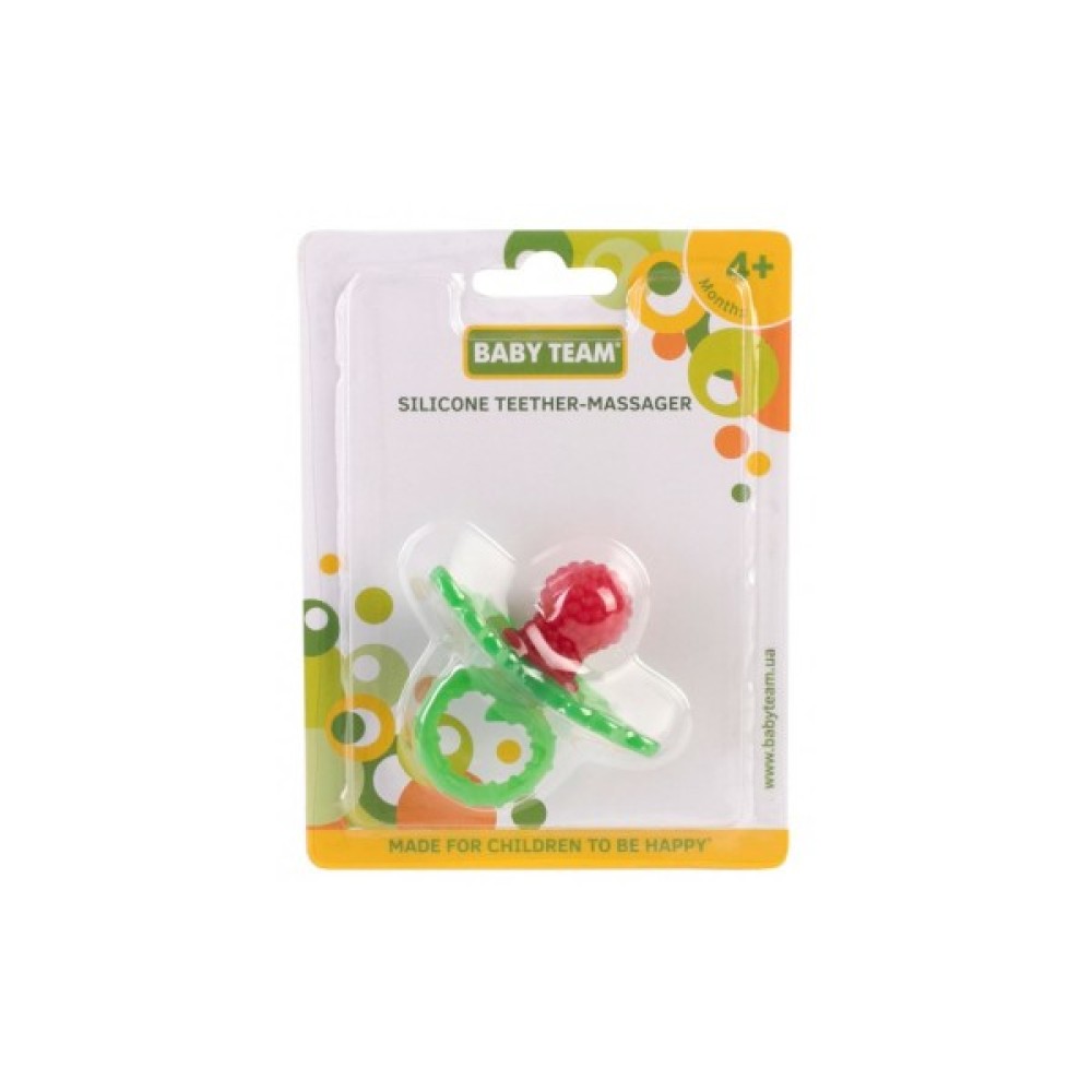 Прорізувач-масажер "Малинка" від Baby Team — відомого британського бренда якісної дитячої продукції. Прорізувач зменшує дискомфорт і больові відчуття під час прорізування зубів, ефективно масажуючи ясна малюка деталями різної форми.