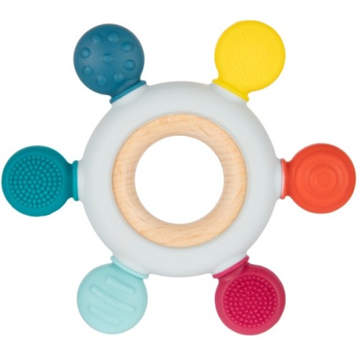 Дерев'яно-силіконовий прорізувач - ідеальне рішення при прорізуванні зубів у малюків. Прорізувач виготовлено з натуральної деревини бука та безпечного силікону. Поєднання матеріалів різної твердості і текстури полегшить біль при прорізування зубчиків малюку завдяки кусанню та масажуванню сверблячих ясен.