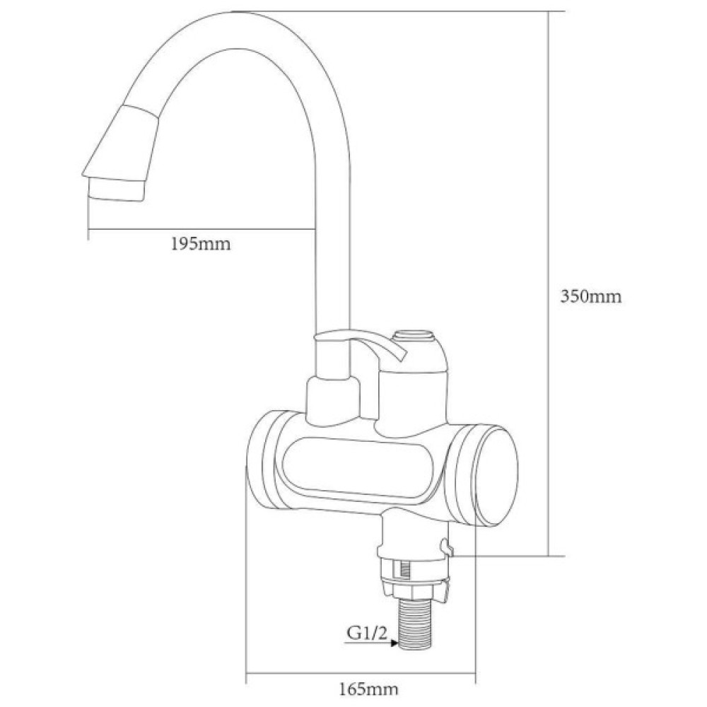 Ця модель проточника складається з міцного вологозахисного корпусу з нагрівальними елементами, поворотного J-образного виливу, а також регулятора натиску і температури нагріву струменя, яка відображається на цифровому дисплеї.
