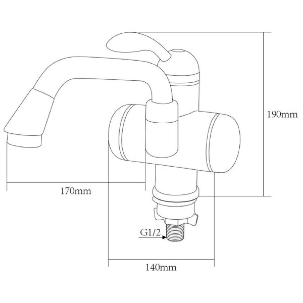 Цей проточник складається з термостійкого корпусу білого кольору, всередині якого розміщені нагрівальні елементи. Вилив довгий, вигнутий, на виході встановлений аератор для стабілізації потоку води. Регулювання натиску та температури струменя відбувається з допомогою важеля.