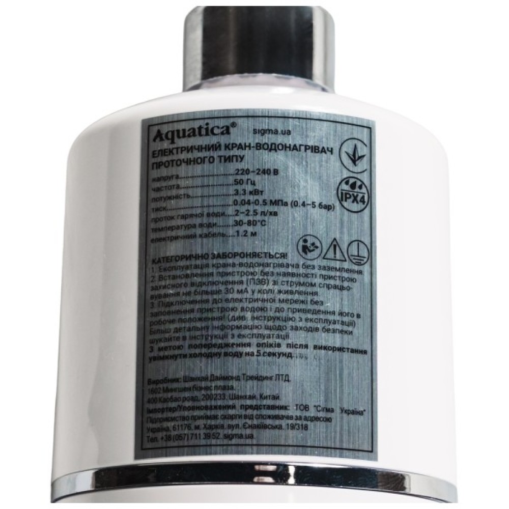 Проточний водонагрівач AQUATICA s96 3.3кВт для кухн (9796133)