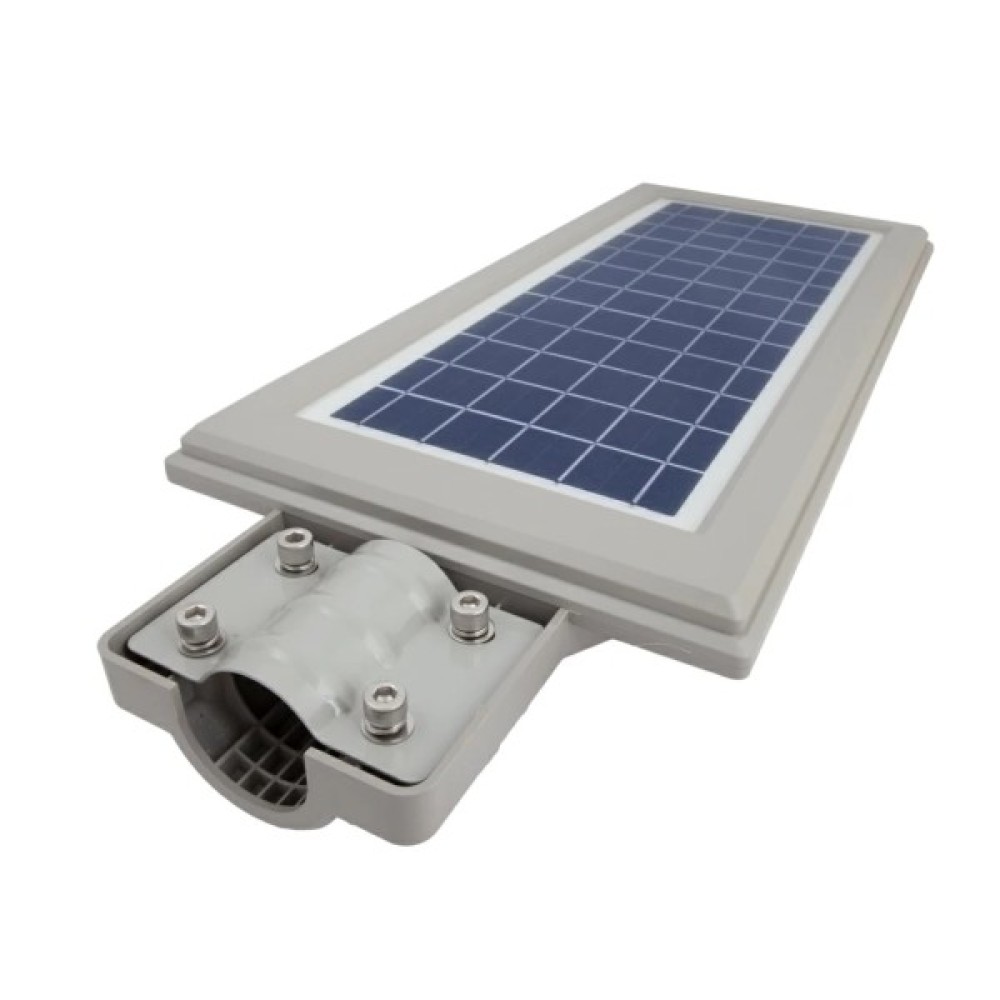 Вуличний світлодіодний консольний світильник на сонячній батареї ALLTOP 90W 6000К новинка у вуличному освітленні. Протягом усього дня батарея світильника ALLTOP 90W 6000К поглинає енергію, що отримується від сонця. Енергія поступово накопичується в акумуляторі світильника і перетворюється на електричну. Джерелом світла служить LED-модуль з безлічі світлодіодів, який споживає значно менше електроенергії, якщо порівнювати з аналогами. Світильник 0845C90-01 встановлюється на консоль та призначений для освітлення вулиць, фасадів будівель та приватного сектору. Світильник працює автономно і не потребує живлення від мережі 220в. Для зручнішого керування світильник має пульт дистанційного керування. Прожектор має вбудований датчик освітленості день/ніч і включається автоматично і датчик руху.
